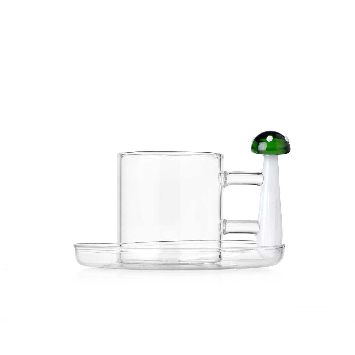 The Alice Coffee Cup with Saucer by Ichendorf is expertly crafted from borosilicate glass using handmade lampworking techniques. Designed by Alessandra Baldereschi, this collection is a tribute to the beloved story of Alice in Wonderland.