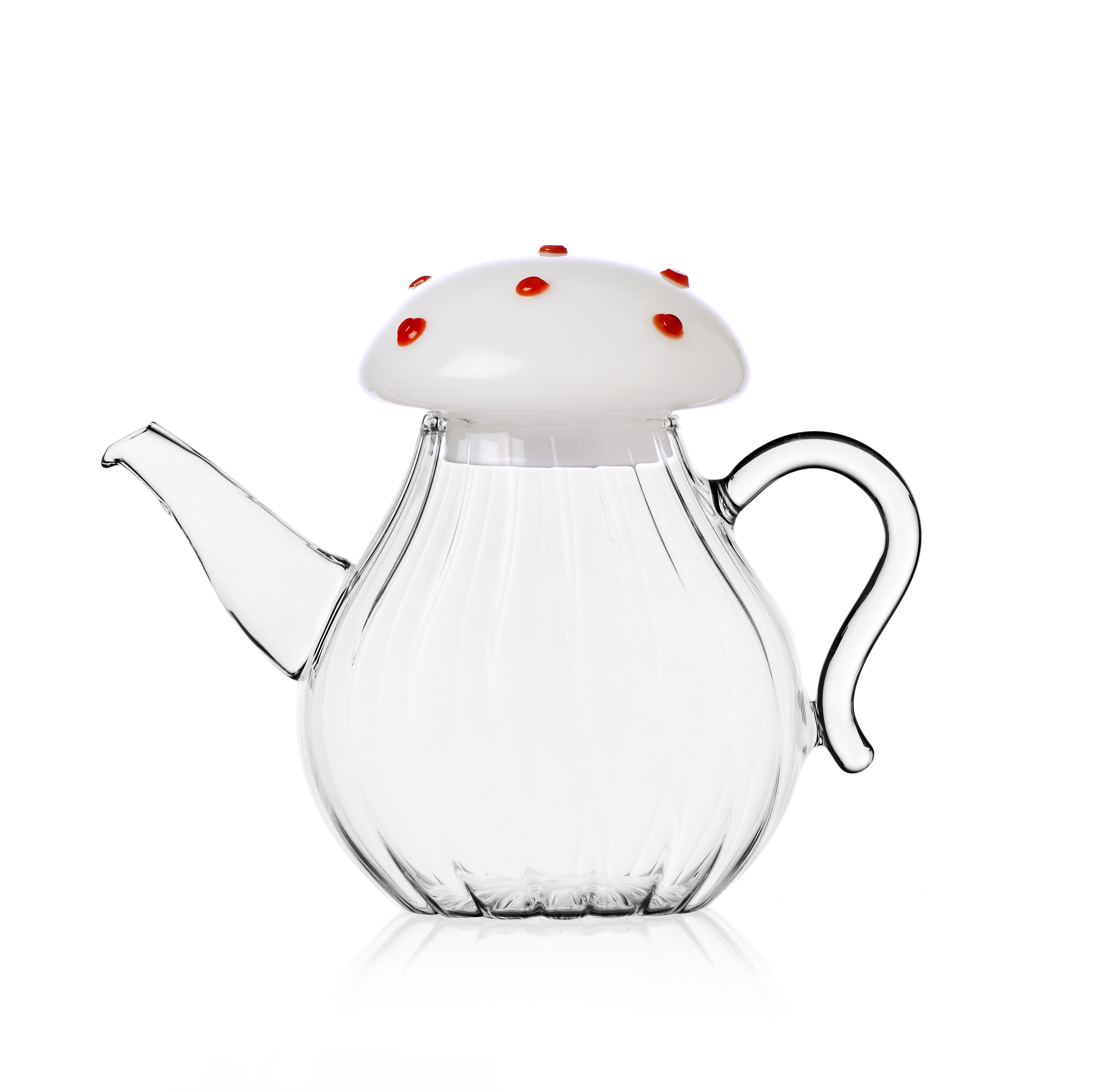 Indulge in the exquisite Alice Christmas collection, featuring the stunning Alessandra Baldereschi design of a handcrafted teapot mushroom with red dots made from flame-worked glass. Dia 4.9" x H 6.5"