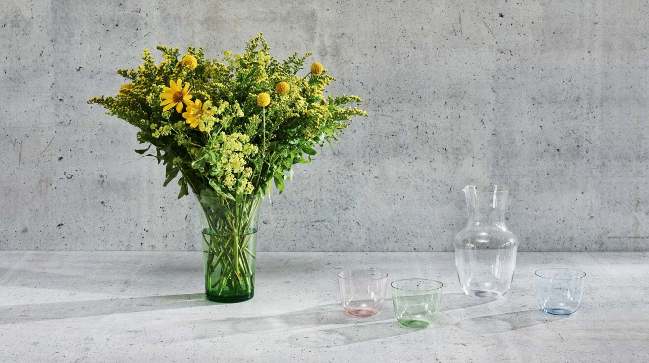 Reflecting the lifestyle of the 50ies, the water pitcher is made from the finest muslin glass, mouth-blown into wooden forms which provides for their elegance. In 1964 the series was awarded the German National Design Price "Gute Form".