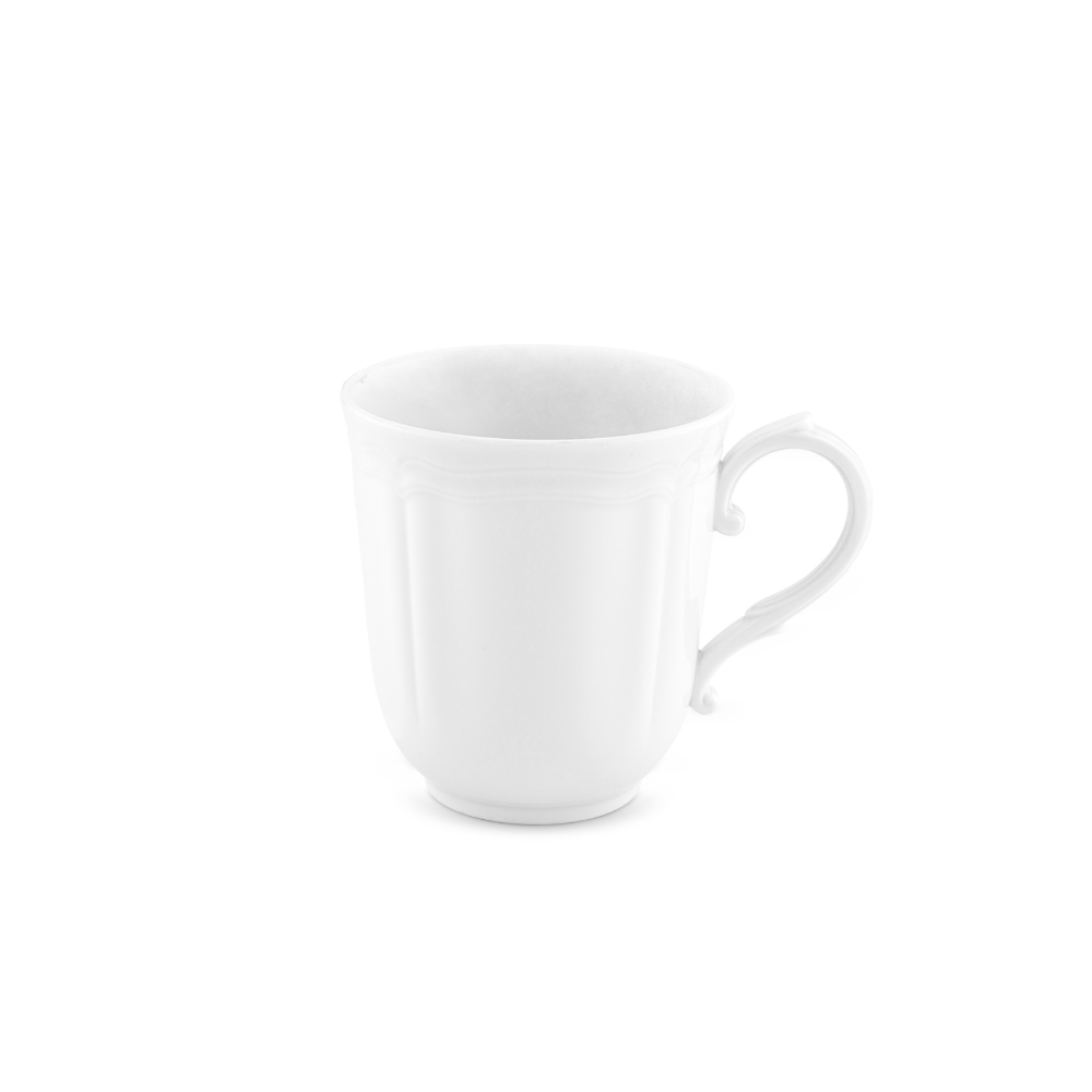 The Antico Doccia mug is distinguished by the delicate decoration in relief on fine porcelain. Antico Doccia is among the historical collections of the Florentine Maison and takes its name from the shape originally created in Doccia. It is characterized by an emblematic design inspired by the designs of late-baroque Florentine silverwork.