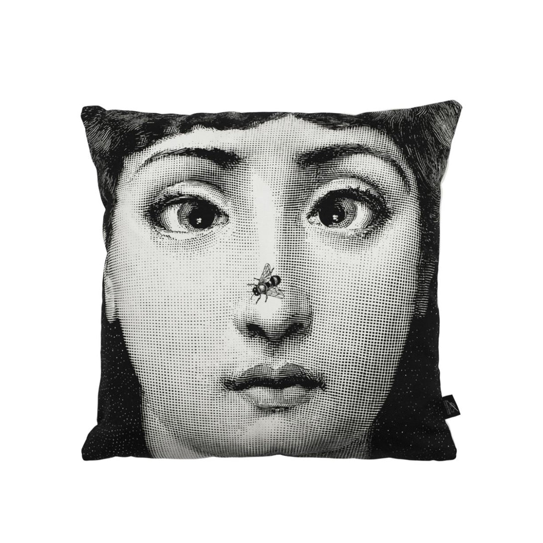 - The face of the opera singer Lina Cavalieri, re-invented by Piero Fornasetti, decorates this superior cushion, part of the iconic "Tema e Variazioni" series: a true collector's item.