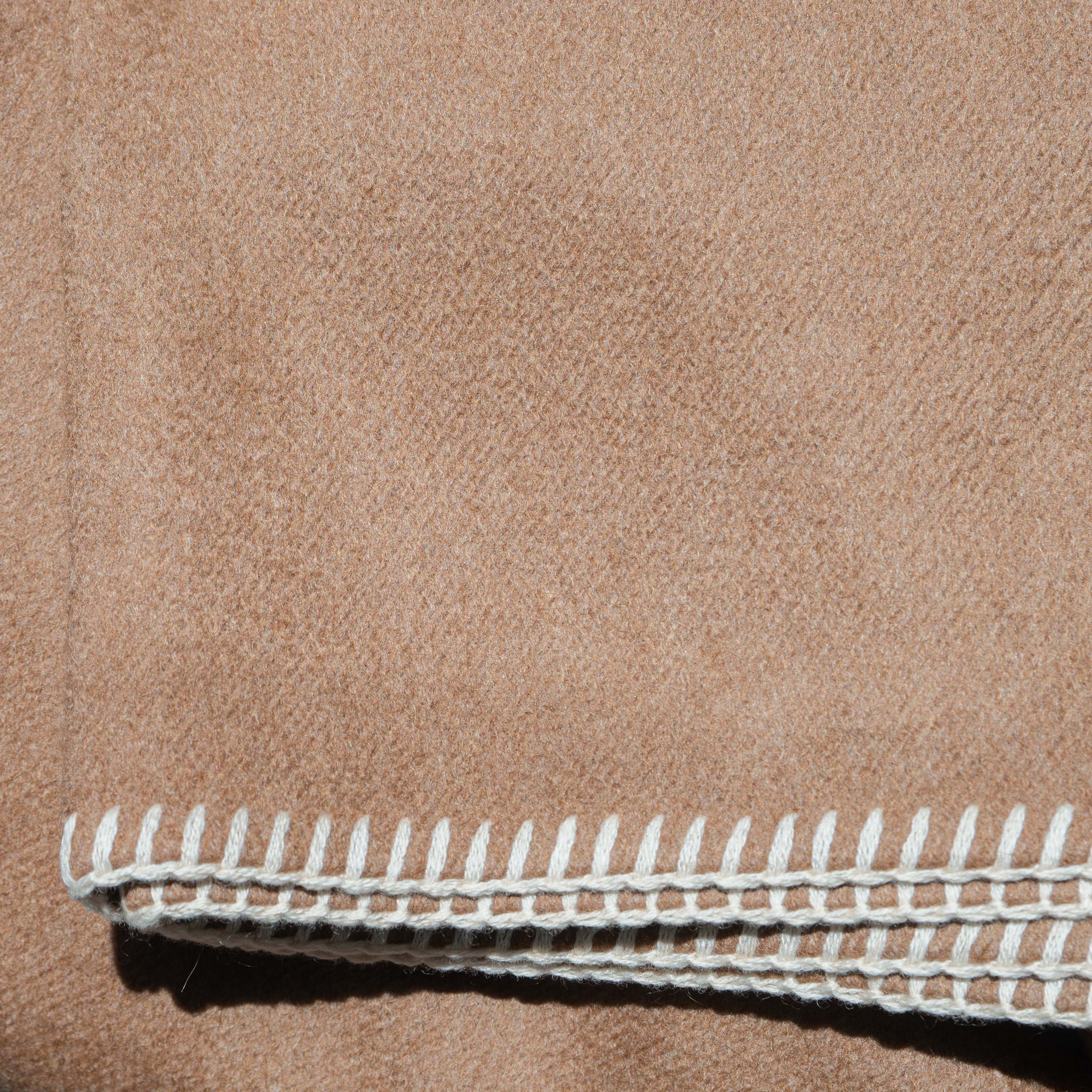 The Biella Blanket Stitch Throw is a soft and elegant blanket made with 15 km of the most prestigious cashmere wool. It’s characterized by a refined tone-on-tone blanket stitch. Among the ten processing steps required for its manufacturing we include the teasing done with natural thistles, a natural process that confers style and extreme quality to the blanket. A perfect balance between the beauty of nature and expert craftsmanship.
