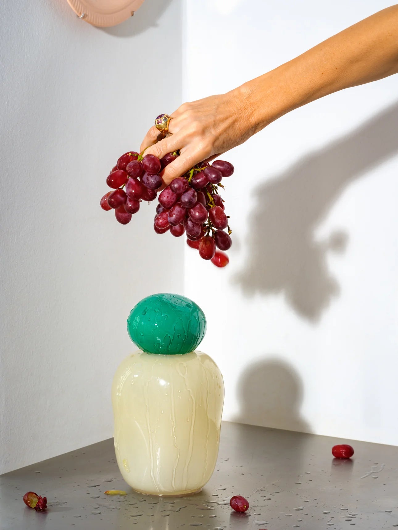 Belonging to Helle Mardahl's confectionery-inspired universe, the Bon Bon Medi is a sculptural addition to any home. Its removable lid and delicious hues make it suitable for tall flowers or as a purely aesthetic element in your living space.