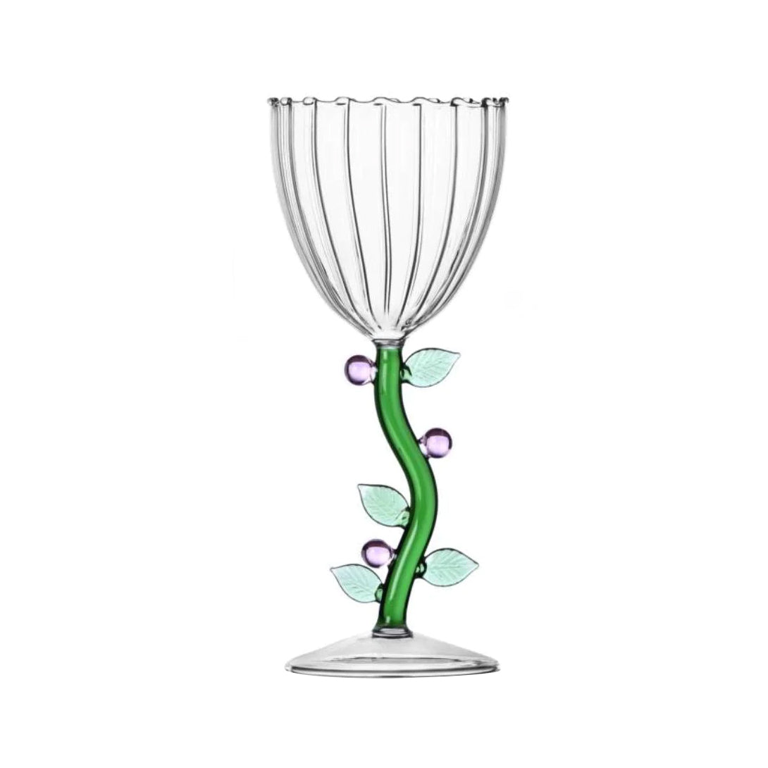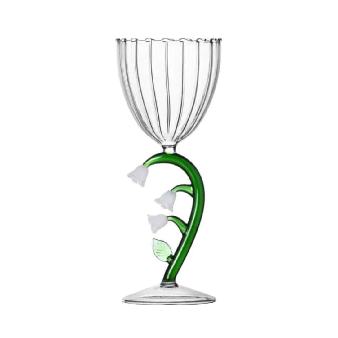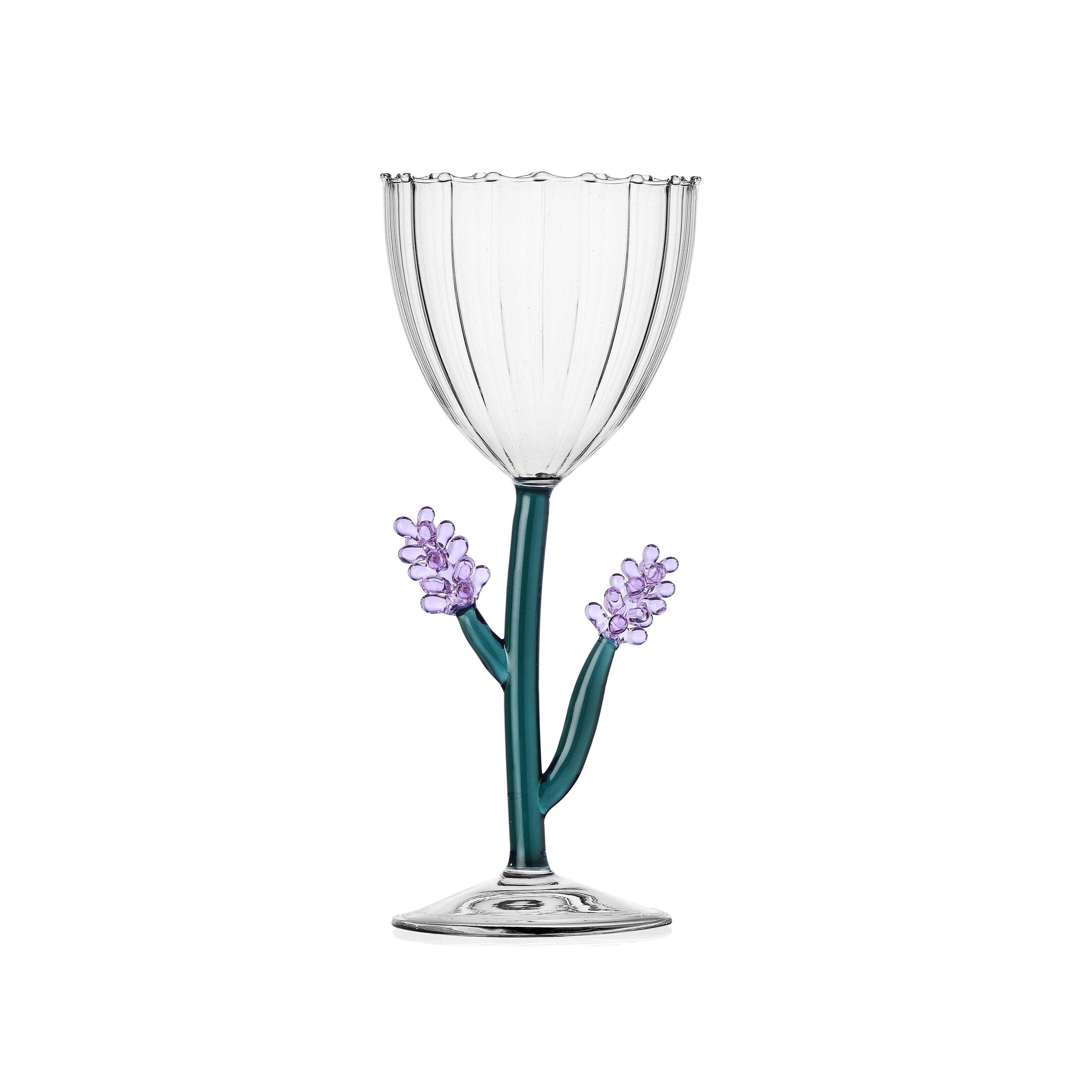 This whimsical collection of stemware is made of borosilicate glass, hand-made and flame-worked. Comes in Light Blue, White, Pink and Lavendar.