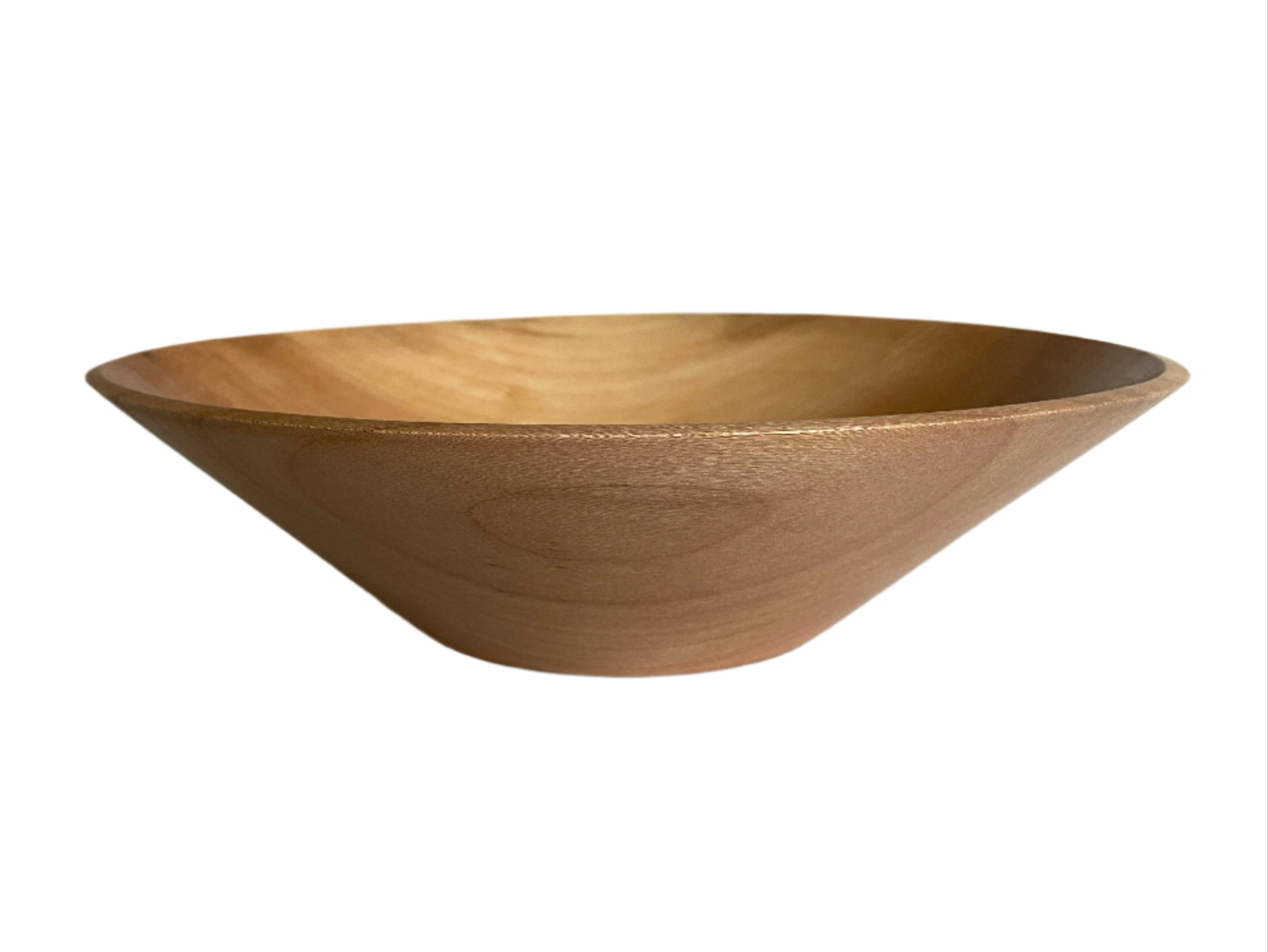 This beautiful wooden bowl is crafted from a single piece of wood and carefully finished with natural oils, making it perfect for serving fruit or salads. However, take care when using strongly pigmented produce.