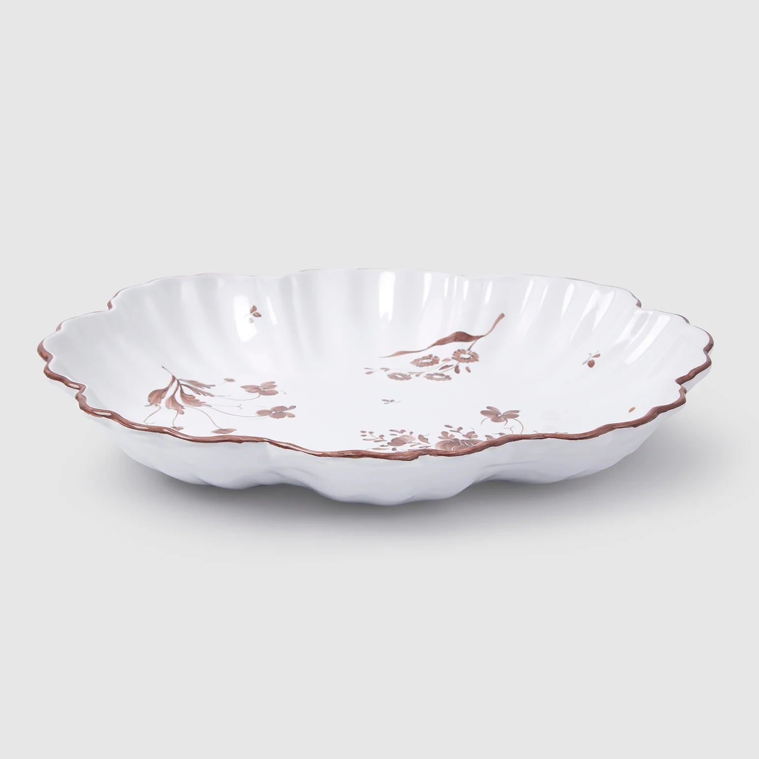 The Camaïeu Chocolat collection is entirely hand made and hand painted by master craftsmen in Moustiers-Sainte-Marie. The rich floral design and Louis XV plate shape is a Z.d.G. by Zoë de Givenchy exclusive, made to a family design employing the Camaïeu technique in unique chocolate brown.