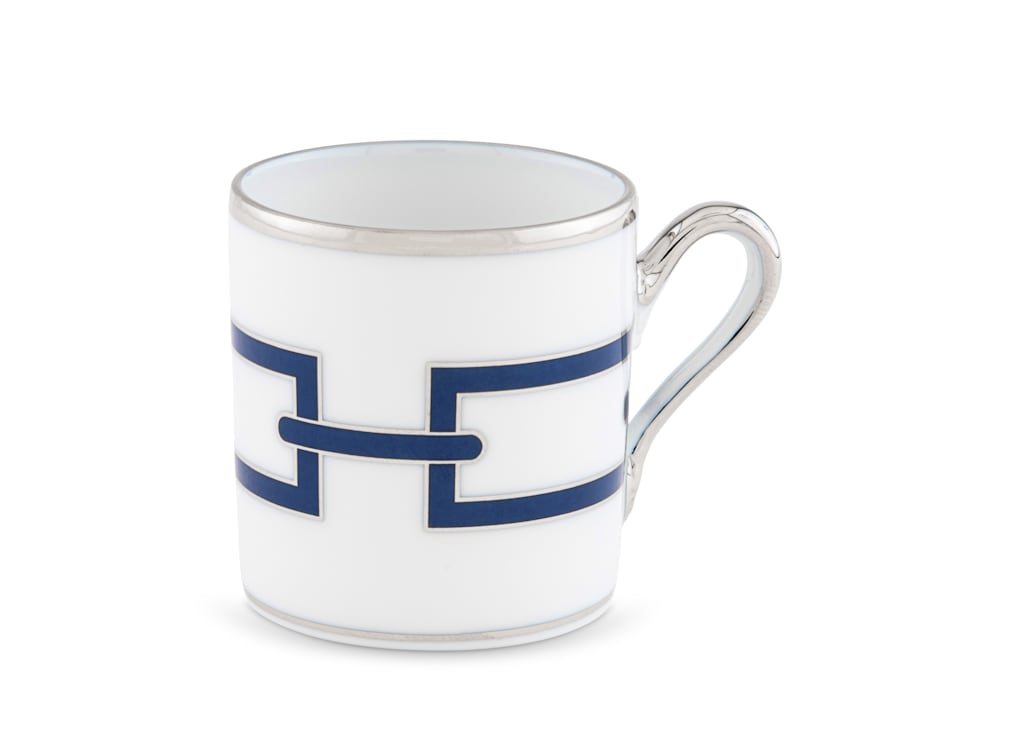 The coffee cup's hand-painted platinum thread, a distinctive signature of the Ginori 1735 manufacturer, embellishes the lines and frames of the geometric motif designed by the master Gio Ponti, which is the result of a ten-phase sophisticated process of craftsmanship. The Catene collection represents the idea of modernity and the evolution of the Italian taste for the art of porcelain. Cup holds 2.75 oz.