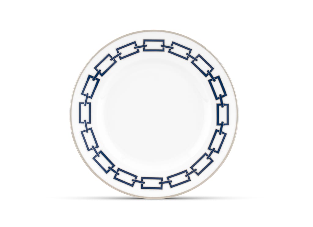 Contemporary and traditional, imagination and craftsmanship, the dessert plates of the Catene collection pay homage to the history of Florentine manufacturing. The brightness of the fine Italian porcelain stands out with the sapphire blue geometric pattern framed by the precious platinum fillet, while the delicate Impero shape characterizes the classicism of the design, versatile and authentic.