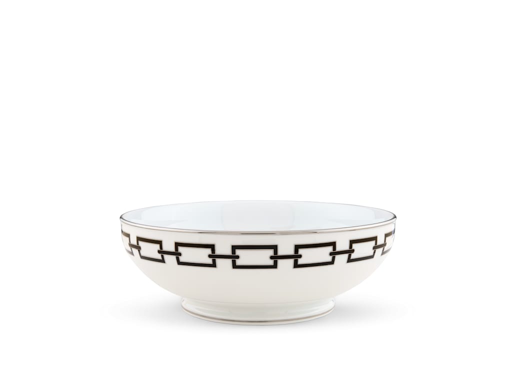The salad bowl is distinguished by the black geometric pattern that resembles an interweaving of elegant chains, a pattern conceived by the creative genius of Gio Ponti. The platinum thread, a distinctive signature of the Ginori 1735 studio, embellishes the contours and illuminates the design as a whole, for the enjoyment of an unforgettable gastronomic experience.