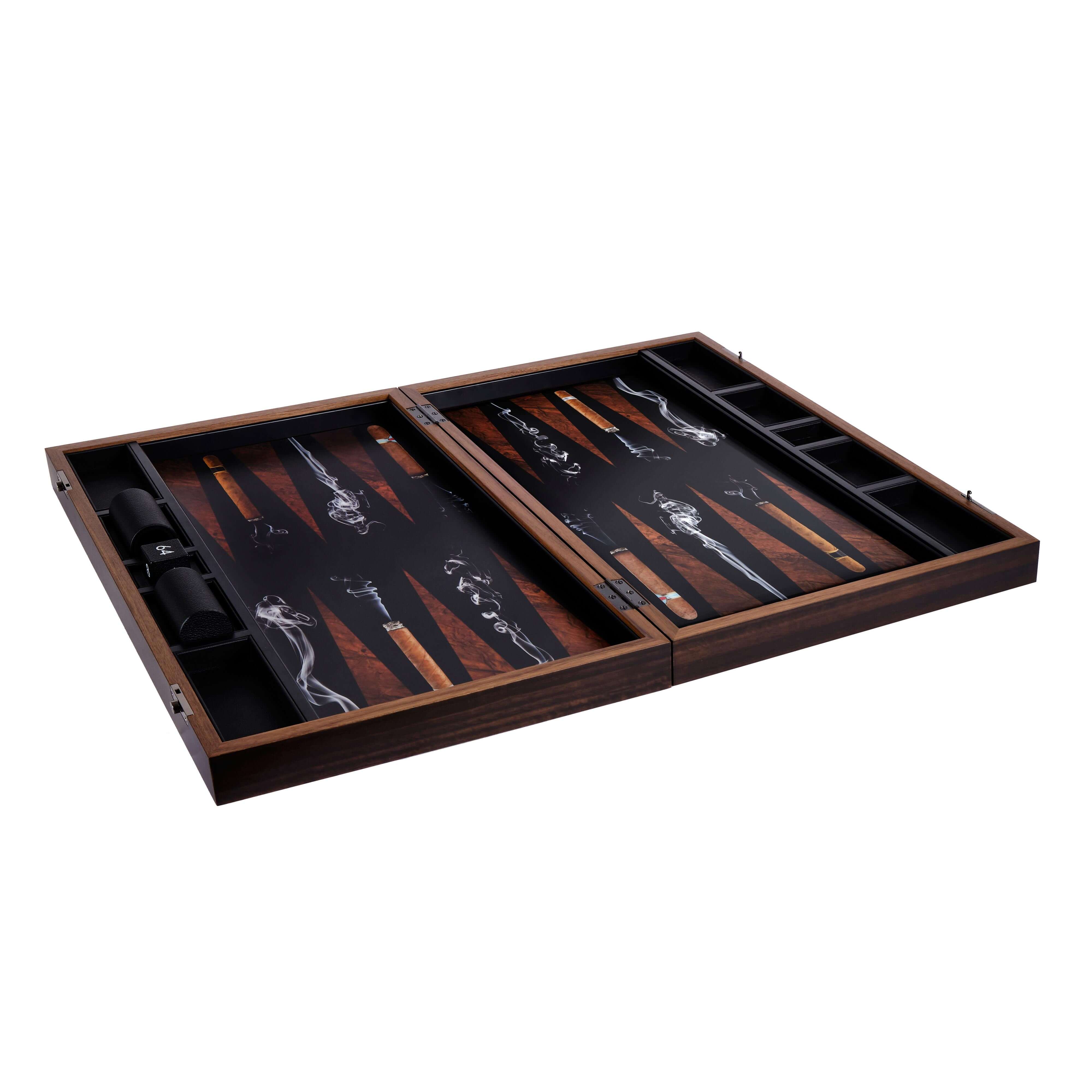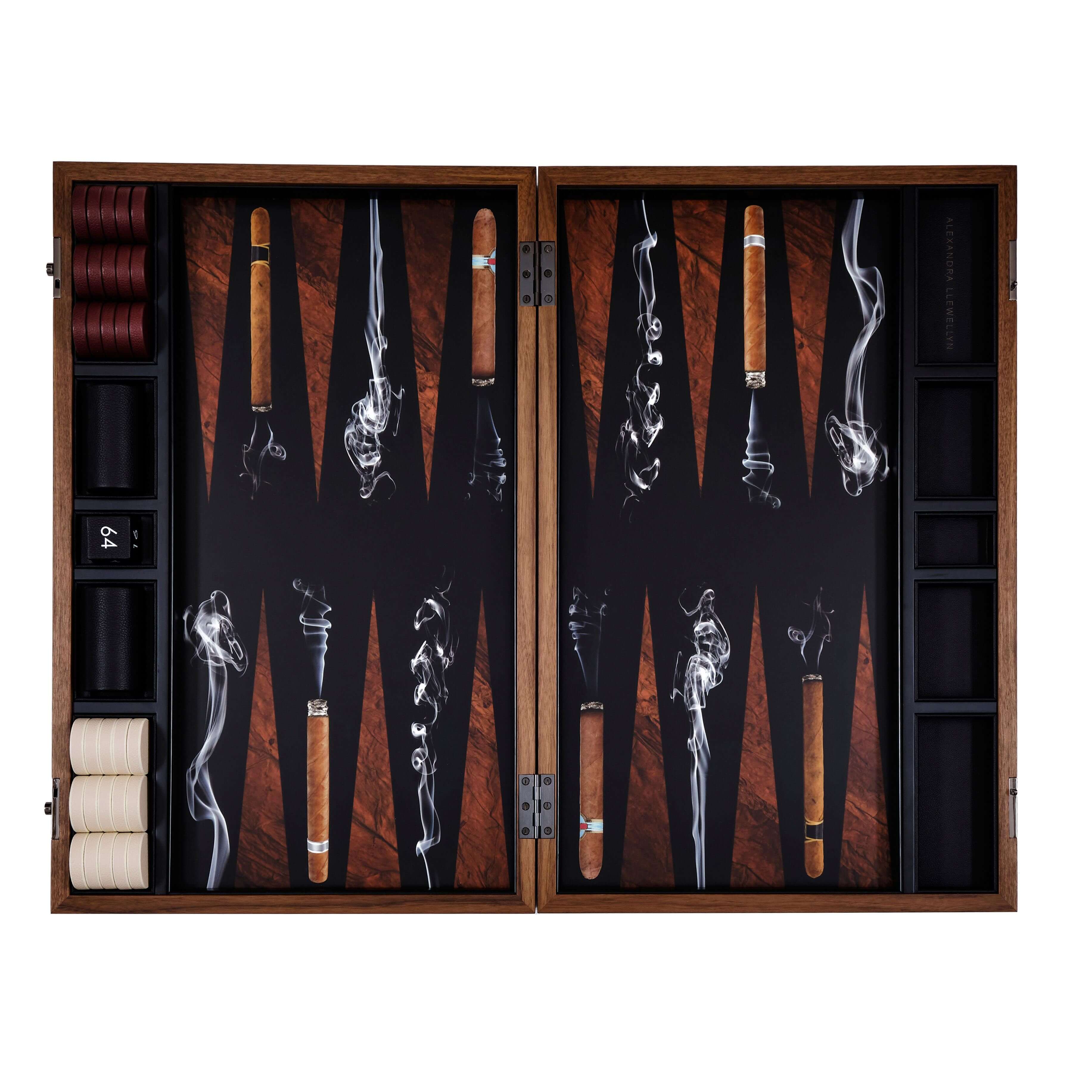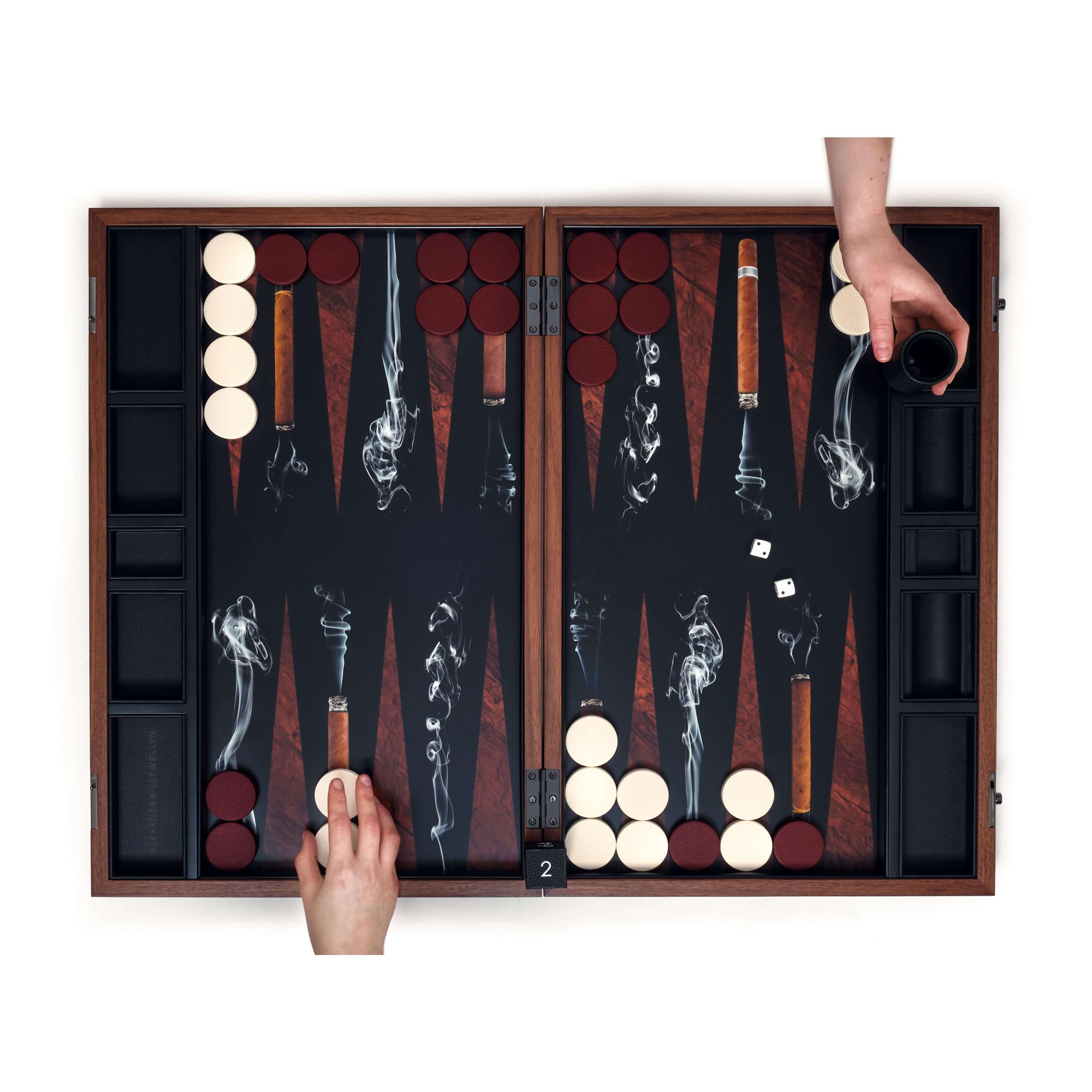 For the man who has everything, there is our Cigar backgammon set, which captures the smoky allure of games enjoyed after dark. A unique handcrafted gift for the connoisseur and cigar lover, the nostalgic design is perfectly at home in a bachelor pad, study, office or the most elaborate of living rooms.
