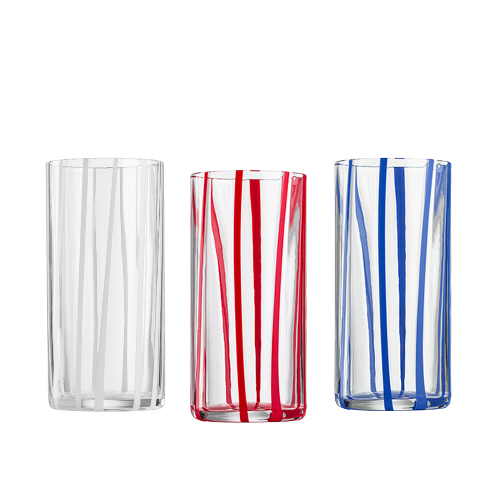 Refined pieces of Murano excellence, enjoy these elegant blown glasses with stunning stripes for a stylish highball.