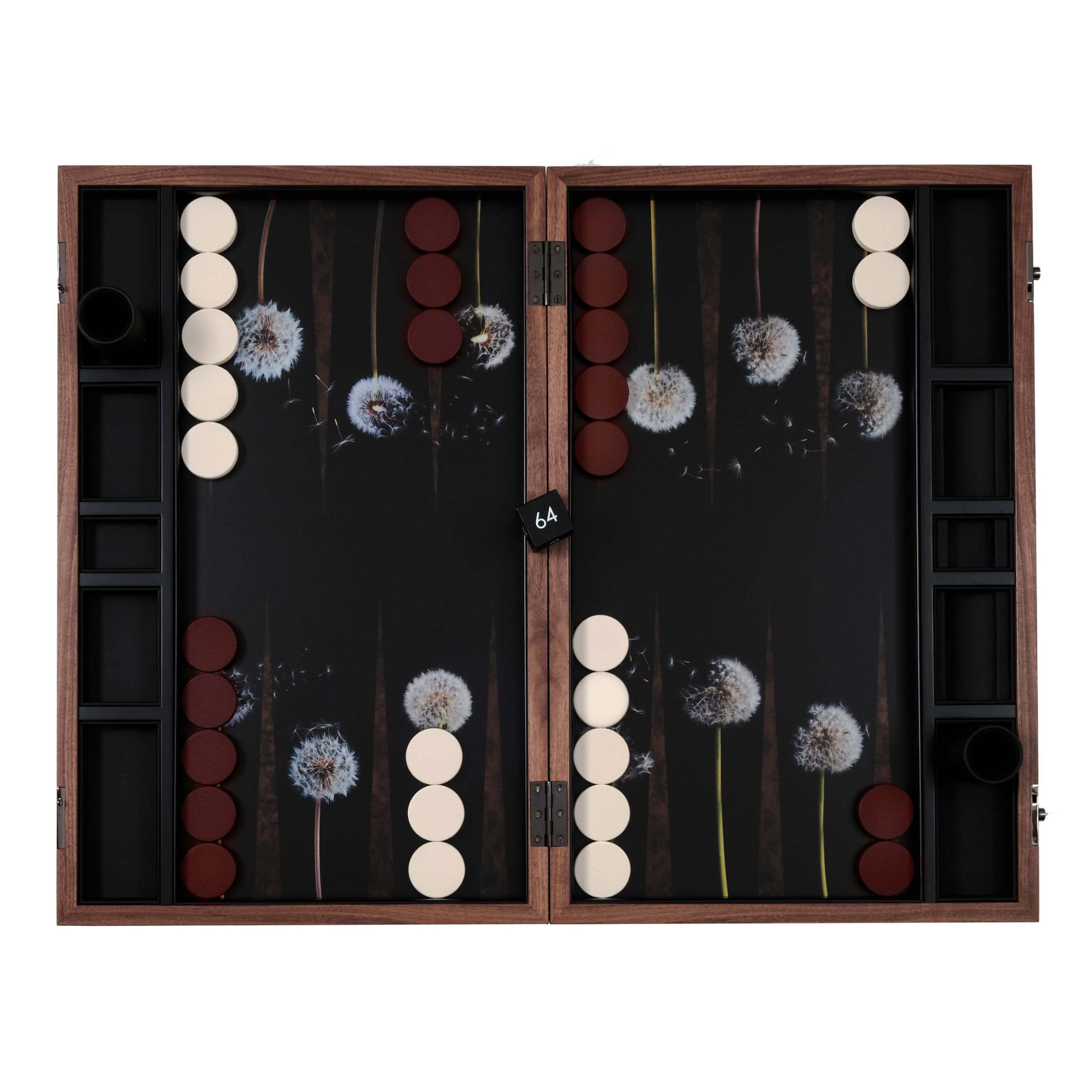 Exploring the concept of time and how its passing ushers in new beginnings, this photographic Dandelion Signature backgammon set captures the delicate process of a dandelion shedding its seeds on the wind – an exquisite accessory for the home and a beautifully realized game that will bring a lifetime of enjoyment.