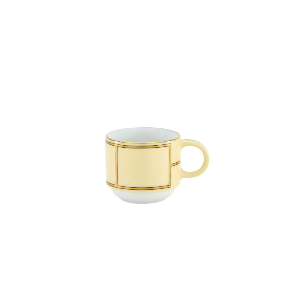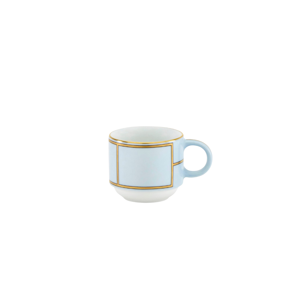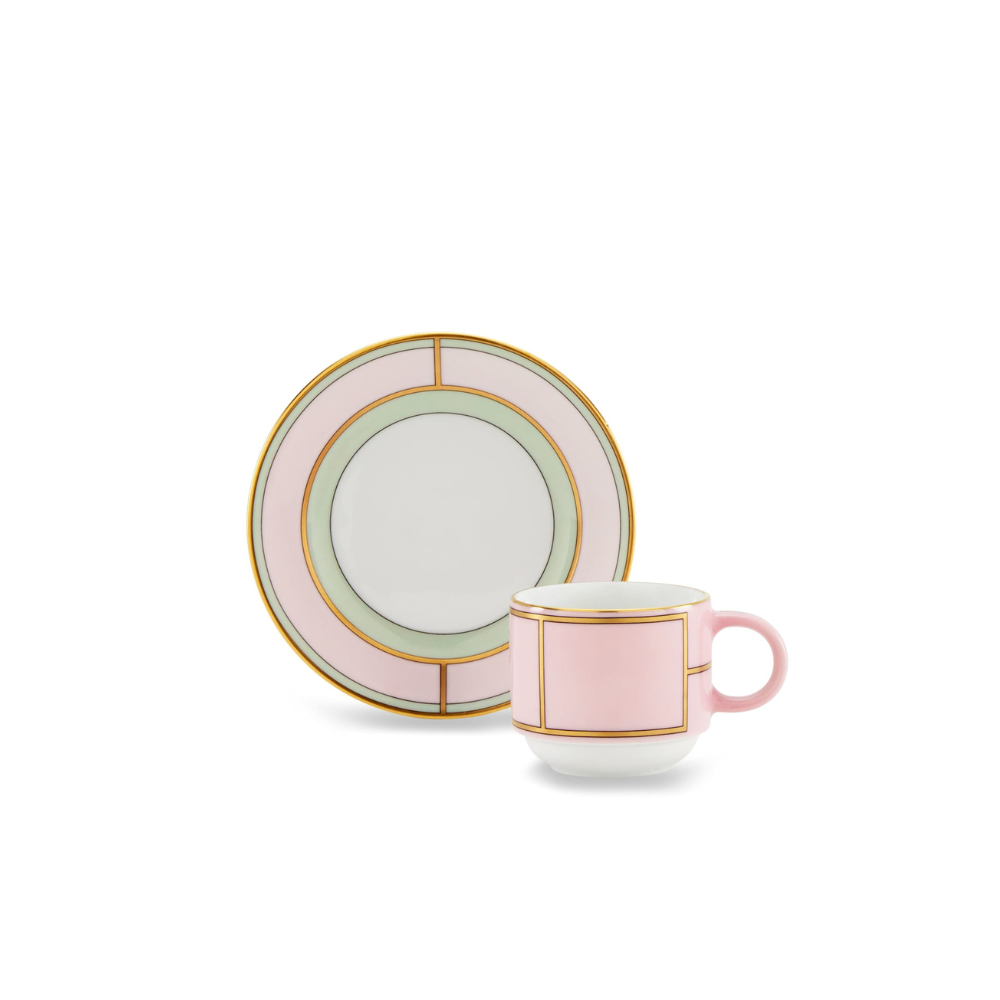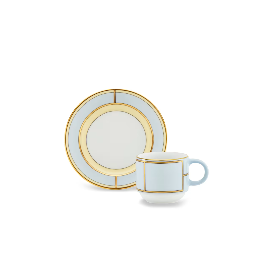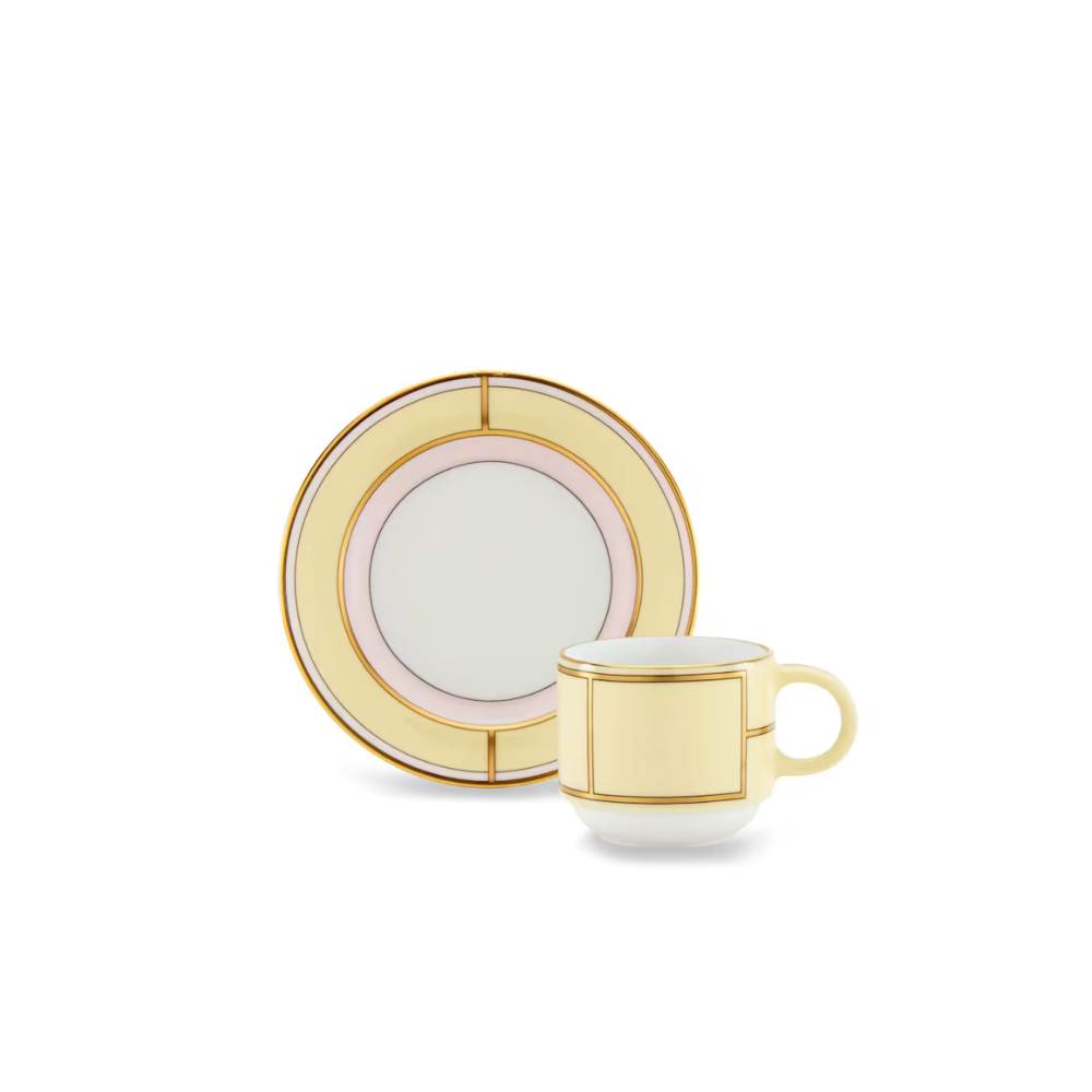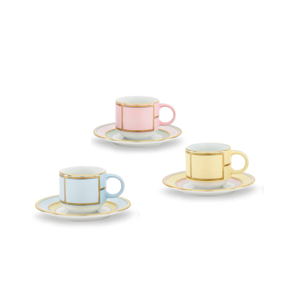 Handcrafted in Italy with gold detailing, this porcelain coffee cup and saucer from Ginori 1735 brings vintage elegance to everyday moments. Inspired by 1950s Italian cinema, its soft pastel tones and refined silhouette elevate your coffee routine with timeless charm.