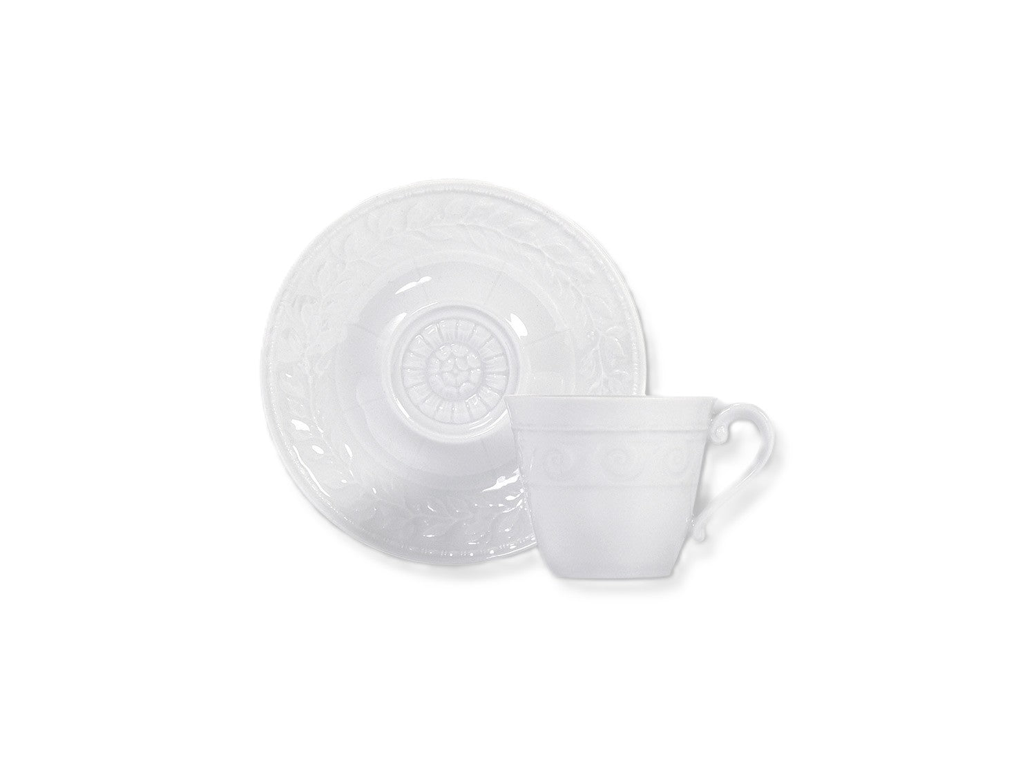 The Louvre Dinnerware collection takes its design inspiration from architectural motifs that adorn the exterior of the Louvre museum. The Bernardaud service was engraved by hand, following the grand tradition of master sculptors. Casual or formal, the collection expresses a unique personality of quality craftsmanship. Holds 4.4 oz.