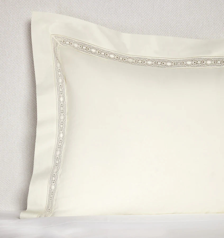 Giza 45 is the finest Egyptian cotton the world over, spun by our Italian craftsmen into a super-fine yarn that is then woven into a crisp, supple fabric. Here, Giza 45 is skillfully stitched with an Italian-made lace-insert that highlights its airy, fretwork patterning. Simply stated: there's nothing else like it.