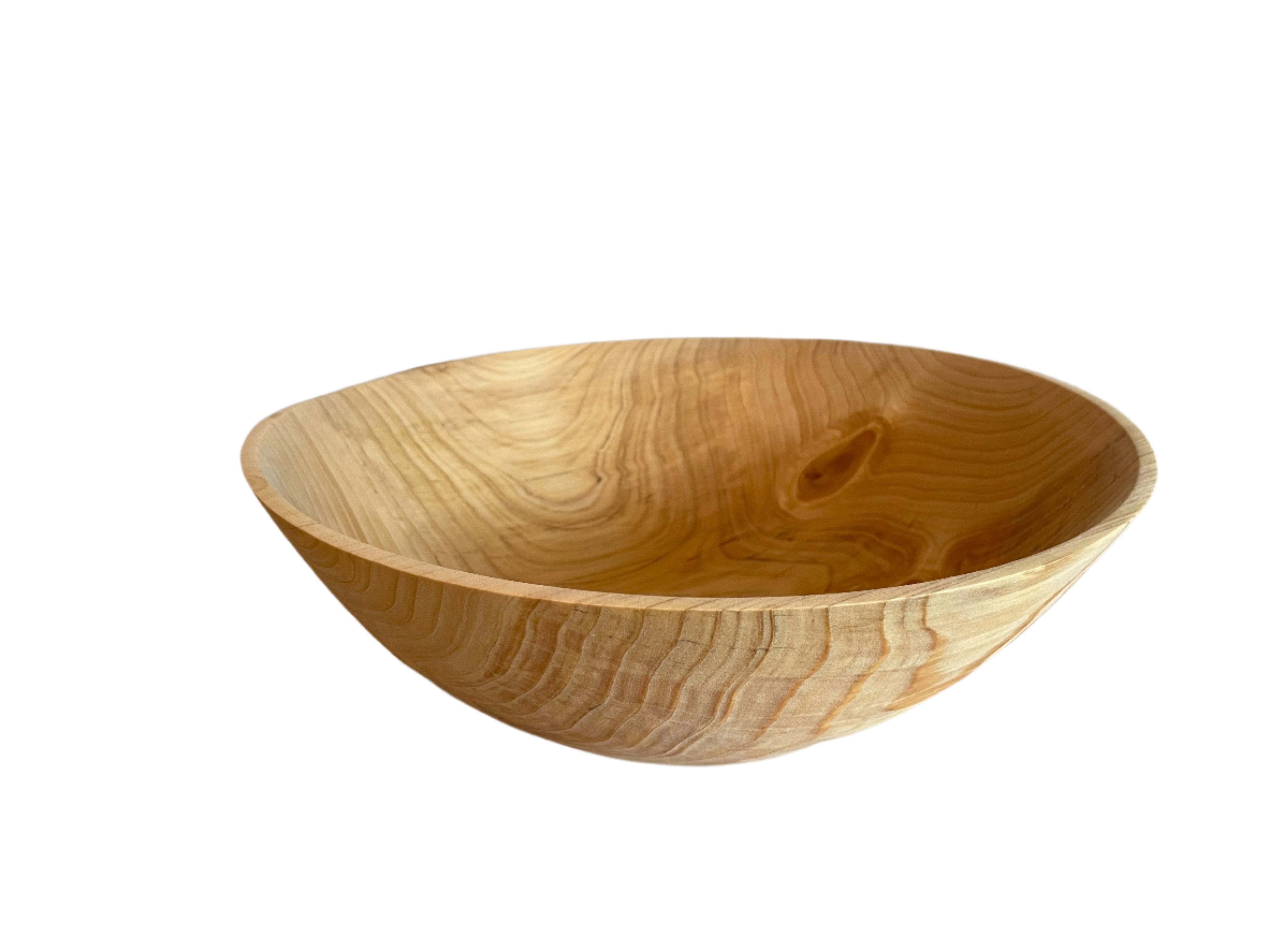 This beautiful wooden bowl is crafted from a single piece of wood and carefully finished with natural oils, making it perfect for serving fruit or salads. However, take care when using strongly pigmented produce.