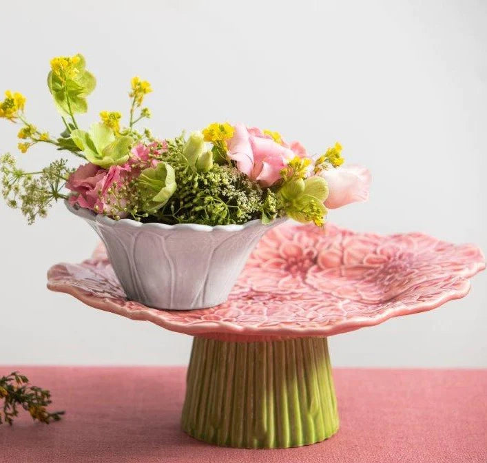 The Maria Flor line draws inspiration from spring, with manual painting and intricate techniques used in each flower. This cake stand is a delightful piece that brings floral elegance to your table with detailed designs of large blooms.