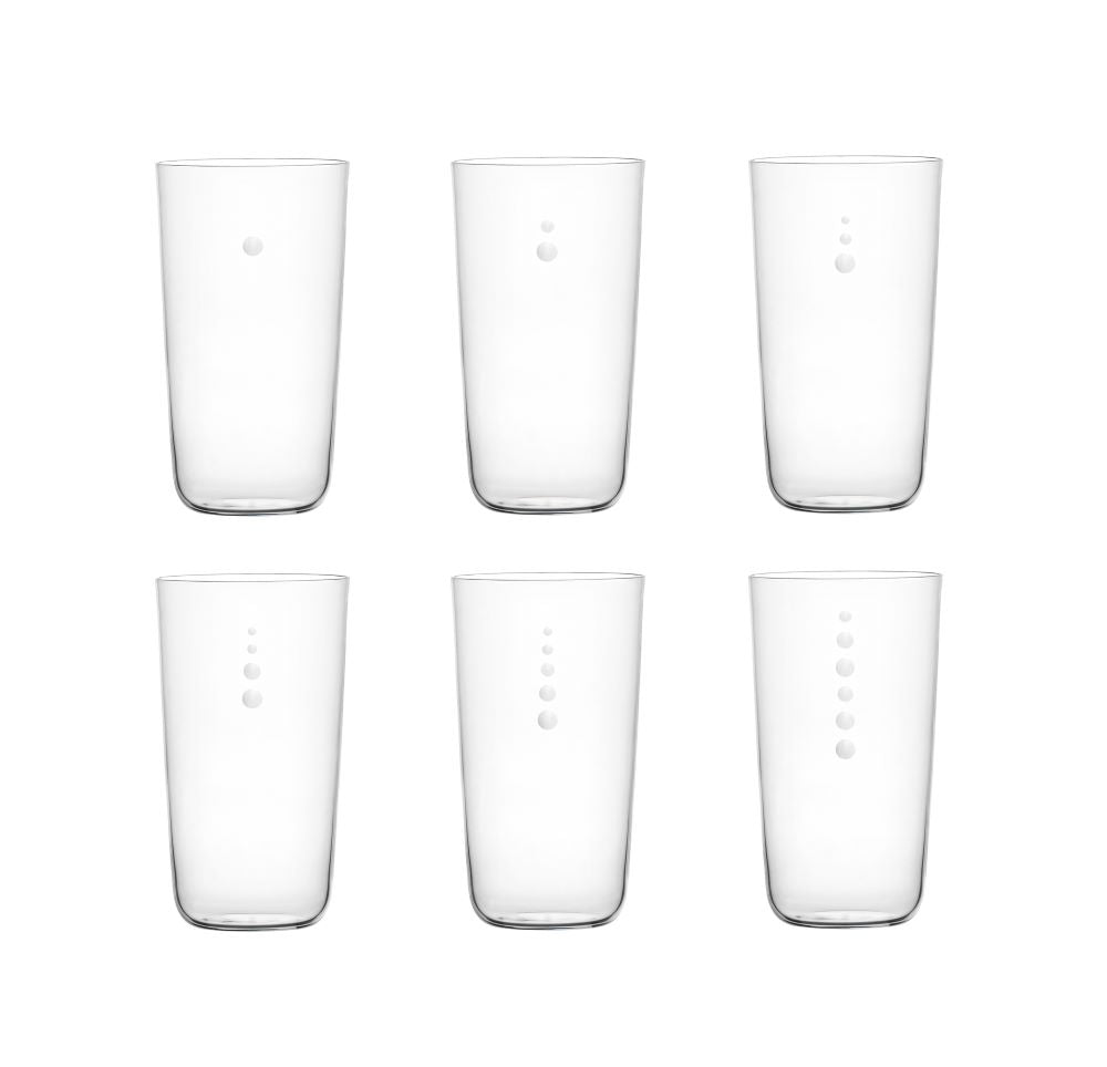 Designed by Stefan Sagmeister in 2022, the "Now is Better" Beer Tumbler Set by Lobmeyr blends contemporary creativity with timeless elegance. Each glass in this six-piece series features a distinctive dot, with an additional dot on each subsequent glass, adding a unique visual rhythm to the set.