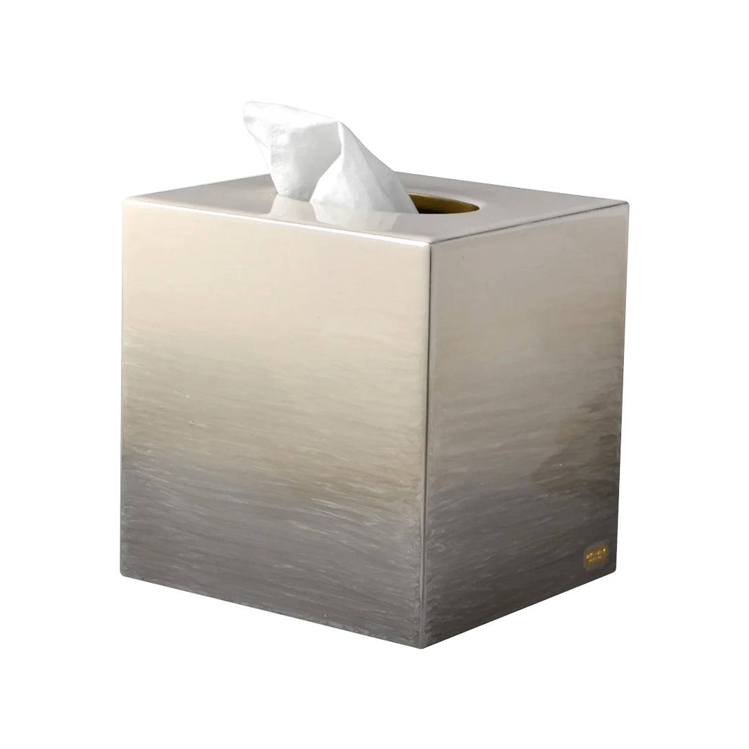 This Ombre Tissue Holder in Natural/Gold is a luxurious addition to any contemporary bathroom suite. Crafted by artisans, it features a variegated pattern created using no less than three tints of enamel. The soothing ‘ombre’ effect adds an elegant touch to your space.