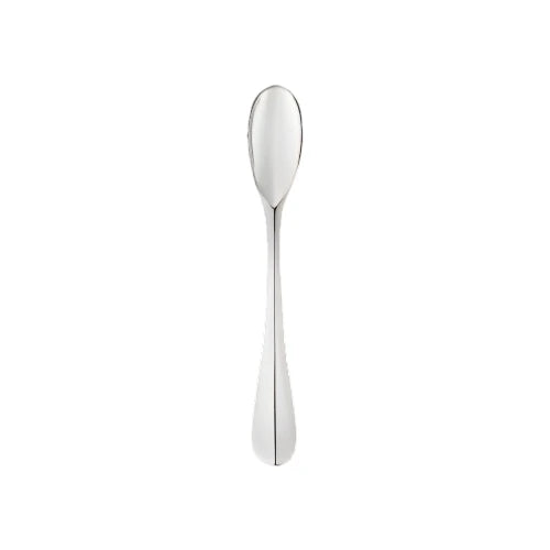 This mirror finish stainless steel espresso spoon in the Origine pattern is perfectly sized for use with a demitasse cup. Origine, a contemporary collection bound to become a classic, was created in 2009 to service people who find beauty in simplicity and who want to set a polished table without sacrificing the robustness of stainless steel. Instead of etchings, gilding or embellishments, it relies on clean lines, matte and mirror finishes, short flared blades and generously rounded handles.