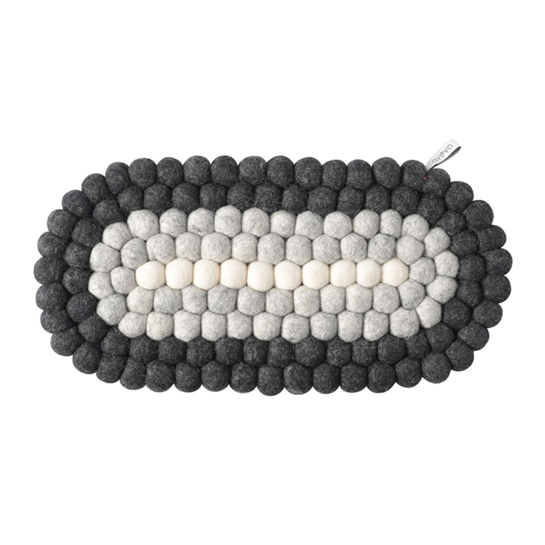 A longer trivet for ovenware and larger pots and pans, this high-quality trivet has been crafted using AZO-free colors for long-lasting results. Handmade of 100% wool, perfect for pots because wool as a material is both dirt and heat repellent. All trivets have a loop for suspension so they can both decorate the wall as well as the table. Aveva's trivets will protect, decorate and color the table and are designed to have a long life.