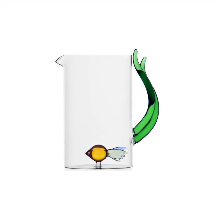The Animal Farm Pitcher Fish with Seagrass is a charming piece from Ichendorf Milano, designed by Alessandra Baldereschi. This sophisticated glass pitcher showcases a charming fish motif and seagrass, bringing a touch of playfulness and elegance to your dining experience. It is part of the exquisite Animal Farm collection, offering a range of nature-inspired glassware options.