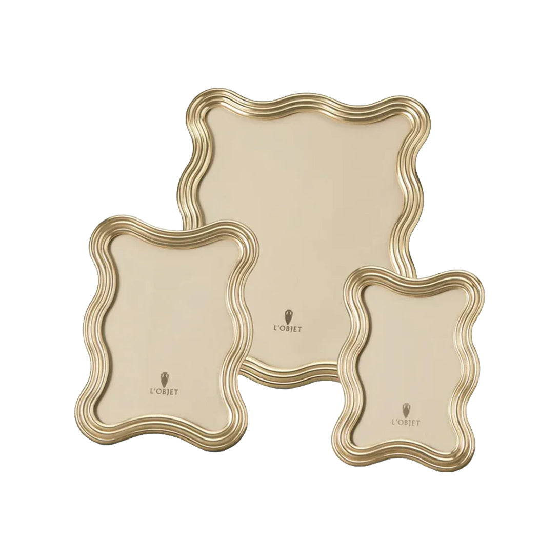 Timeless and refined picture frame design meticulously handcrafted with 24K gold and platinum plating, beveled glass, satin lining and Italian leather and suede backs with beautifully detailed closures.