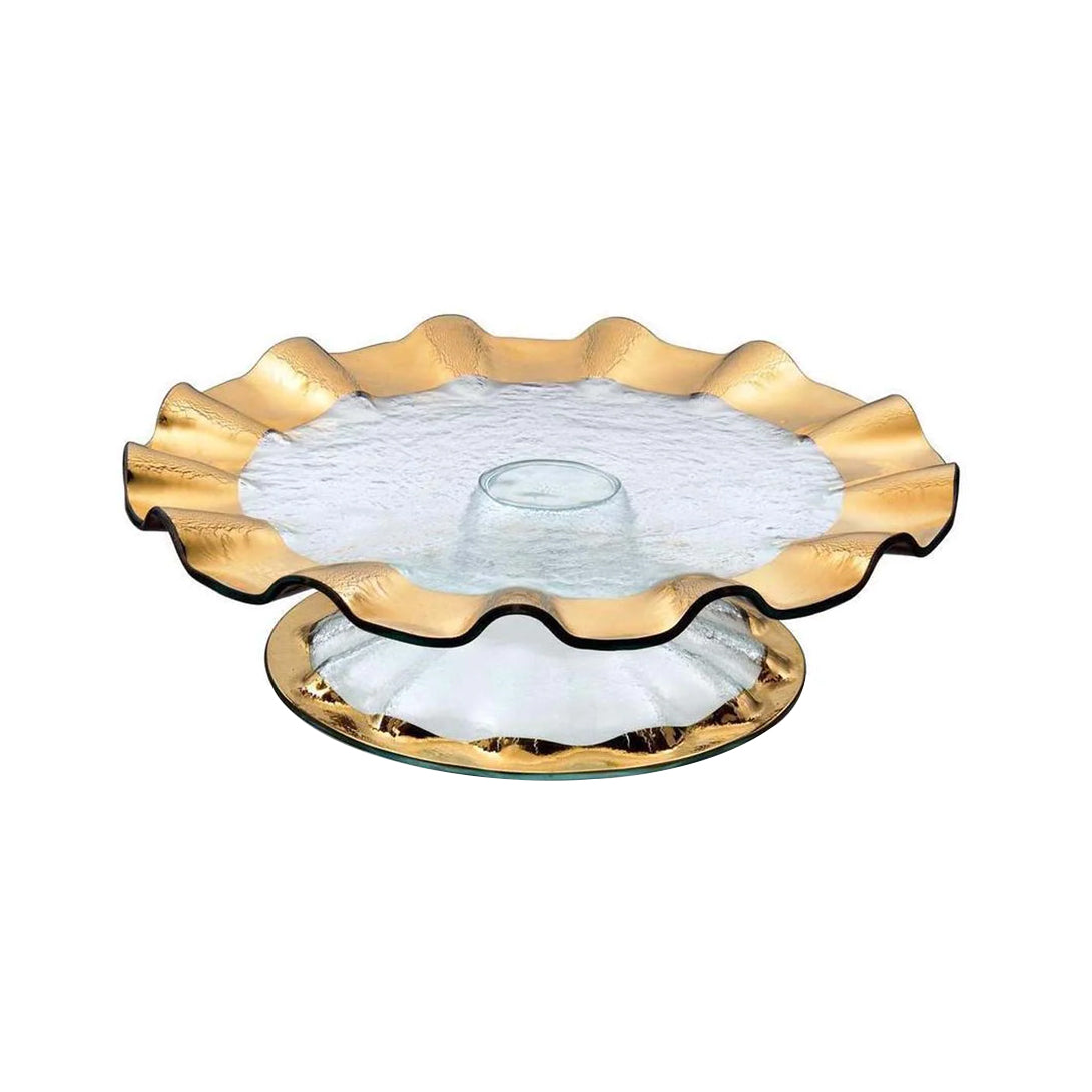 Ancient Italian relics are translated into an abstracted modern design in this handcrafted dinnerware and serving collection from designer Ann Morhauser. This hand painted, 24 karat gold collection tastefully accentuates everything from sleek, modern designs to delicate porcelain, or can be used on its own as a dramatic statement.