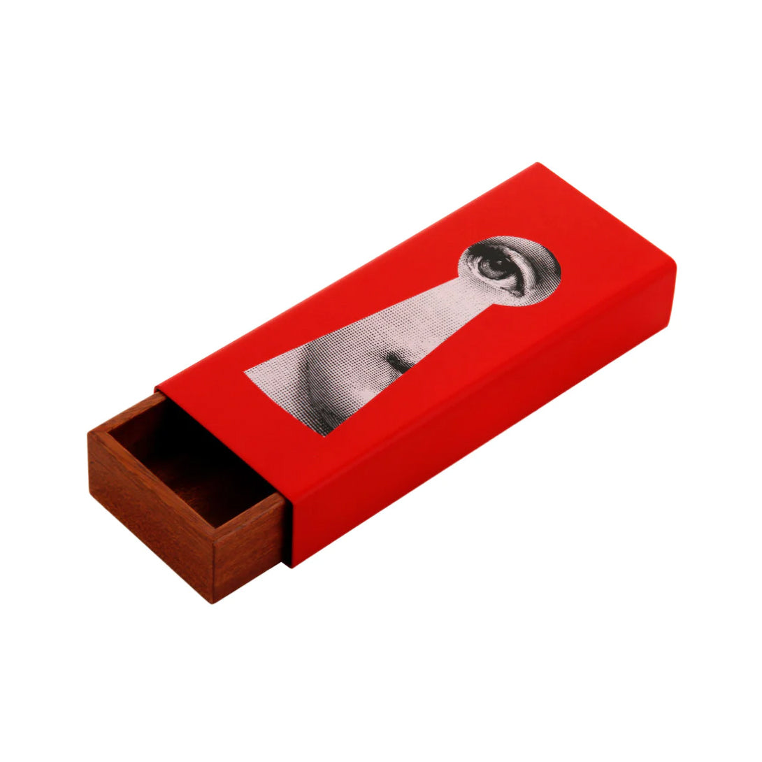 The face of soprano Lina Cavalieri, reinterpreted by Piero Fornasetti, comes to life in this box. Surrounded by bright red, she silently and conspiratorially winks at the viewer: a collector's item from the iconic "Theme and Variations" series.