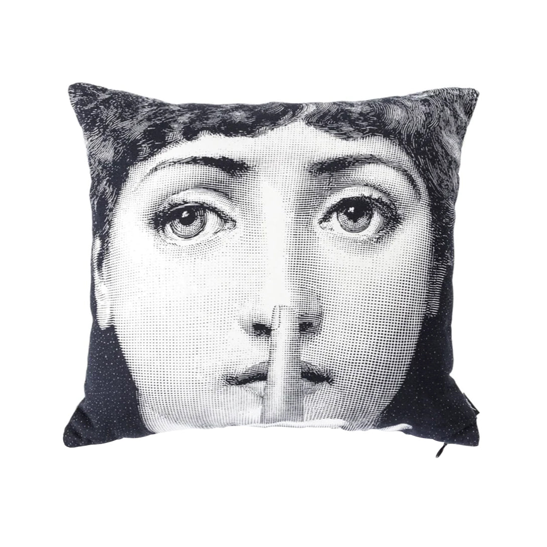 The face of the opera singer Lina Cavalieri, re-invented by Piero Fornasetti, decorates this superior cushion with a removable cover (and padding), part of the iconic "Tema e Variazioni" series: a true collector's item.
