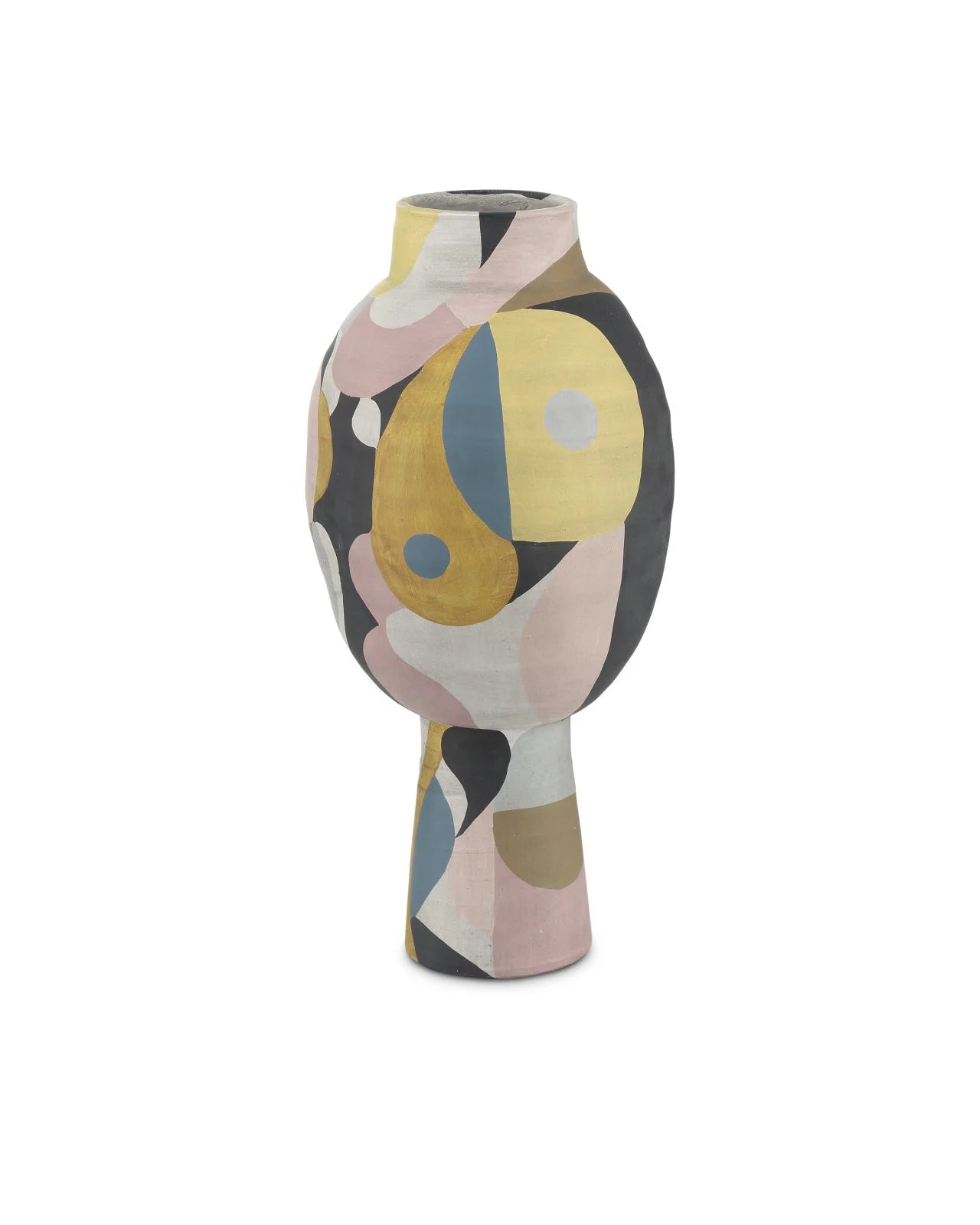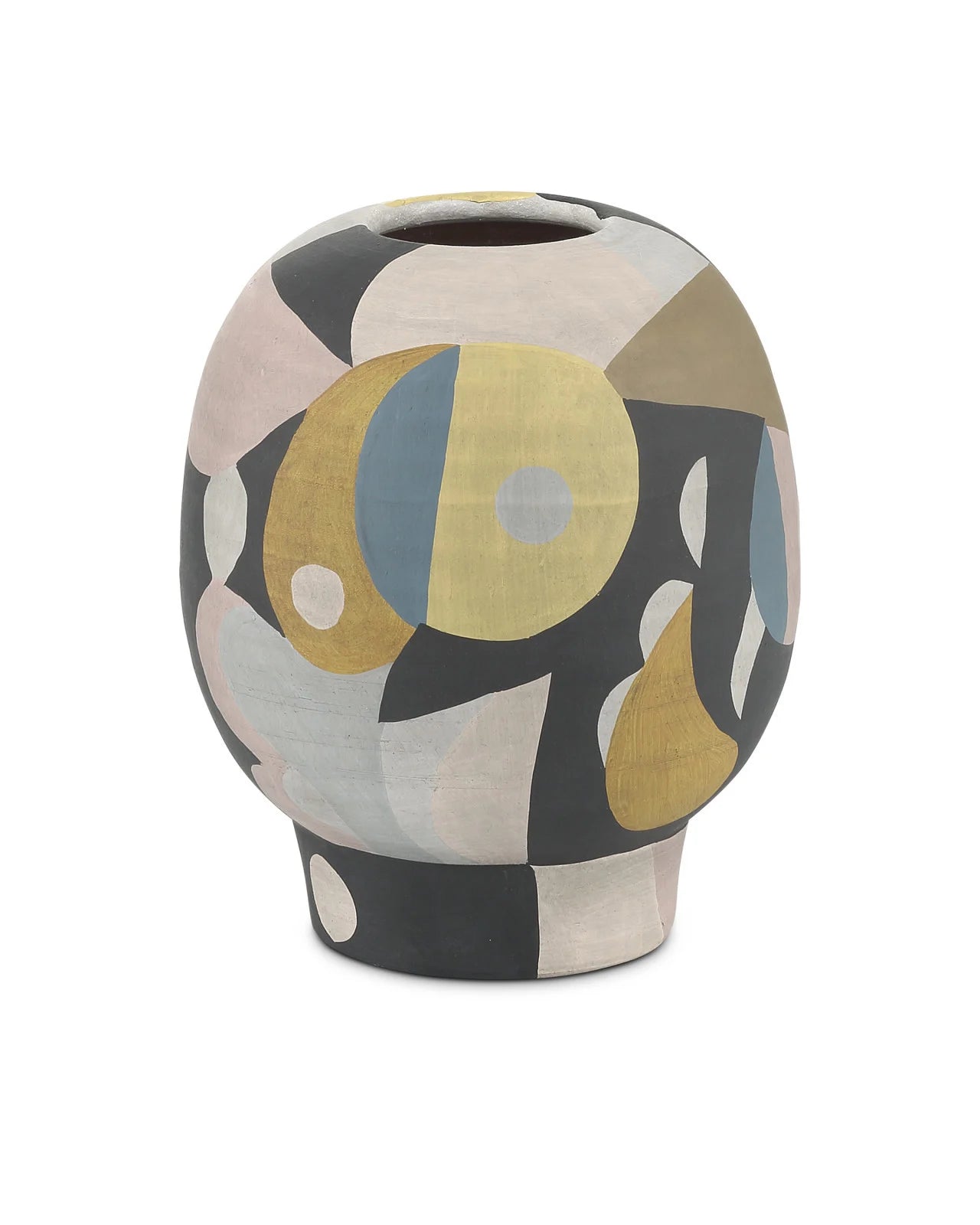 Made of terracotta in blue, pink, black, tan, and yellow subdued pops of color, the So Nouveau Nuit Vase belongs in the Art Decoratifs, or Art Deco, category thanks to its strong hues and graphic qualities. The elegant multicolored vase has a shape that will add interest to its spot in a room.