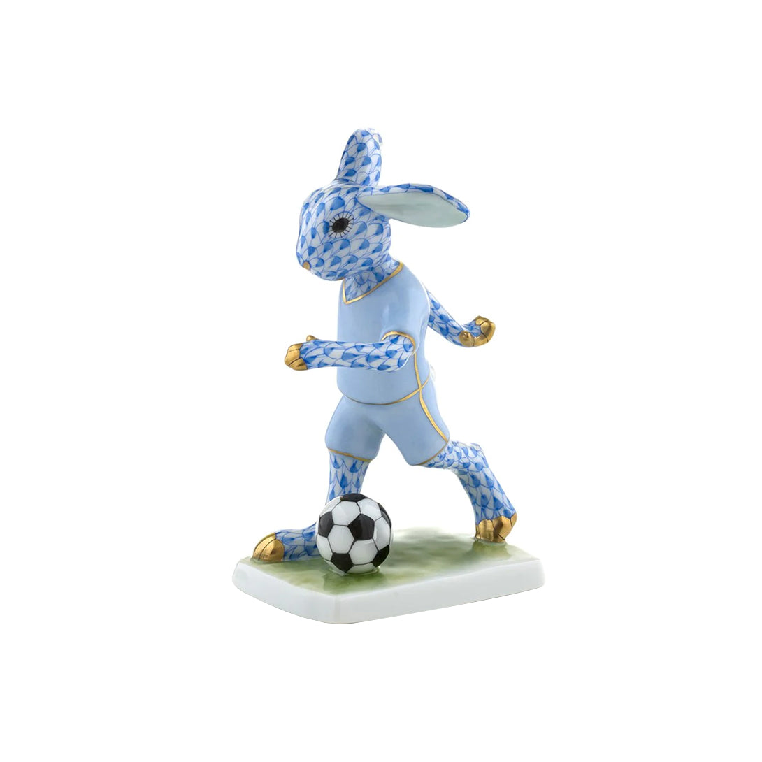 Score a decorative goal with the Herend Soccer Bunny, a playful porcelain piece capturing a rabbit about to kick a soccer ball. Each figurine is expertly hand-painted, infusing your space with whimsy and charm. Perfect for sports enthusiasts and collectors alike, this piece adds a spirited touch to any room.