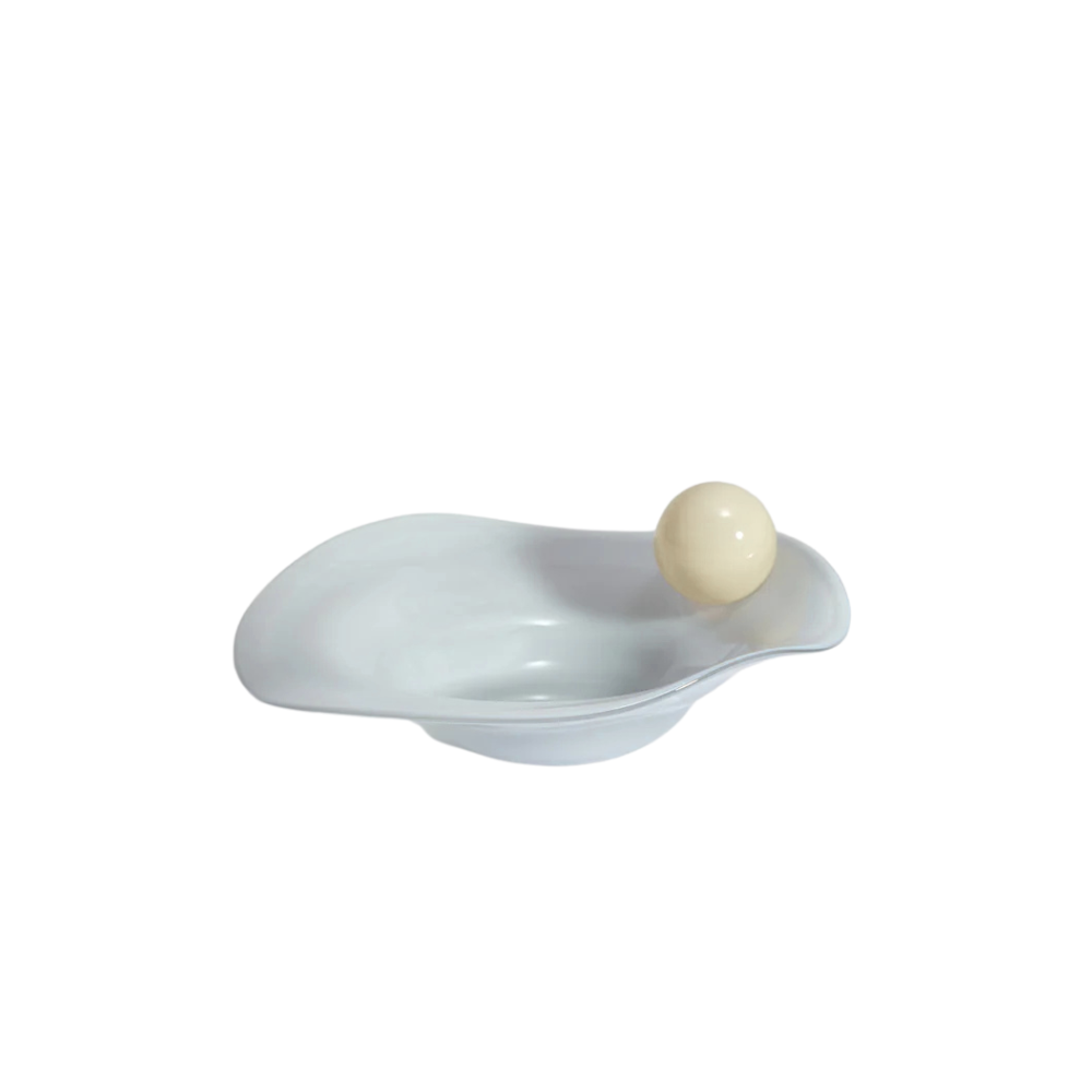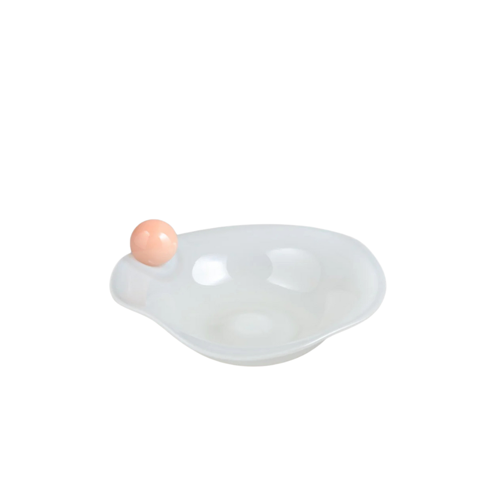In search of a bowl that can stand alone as an art piece and serve a functional purpose, Helle Mardahl has created a dreamy bowl that will make a candy-lover's heart melt. The wavy shape of the bowl, coupled with the glass bubble adorning one side, makes it an extraordinary piece of craftsmanship.