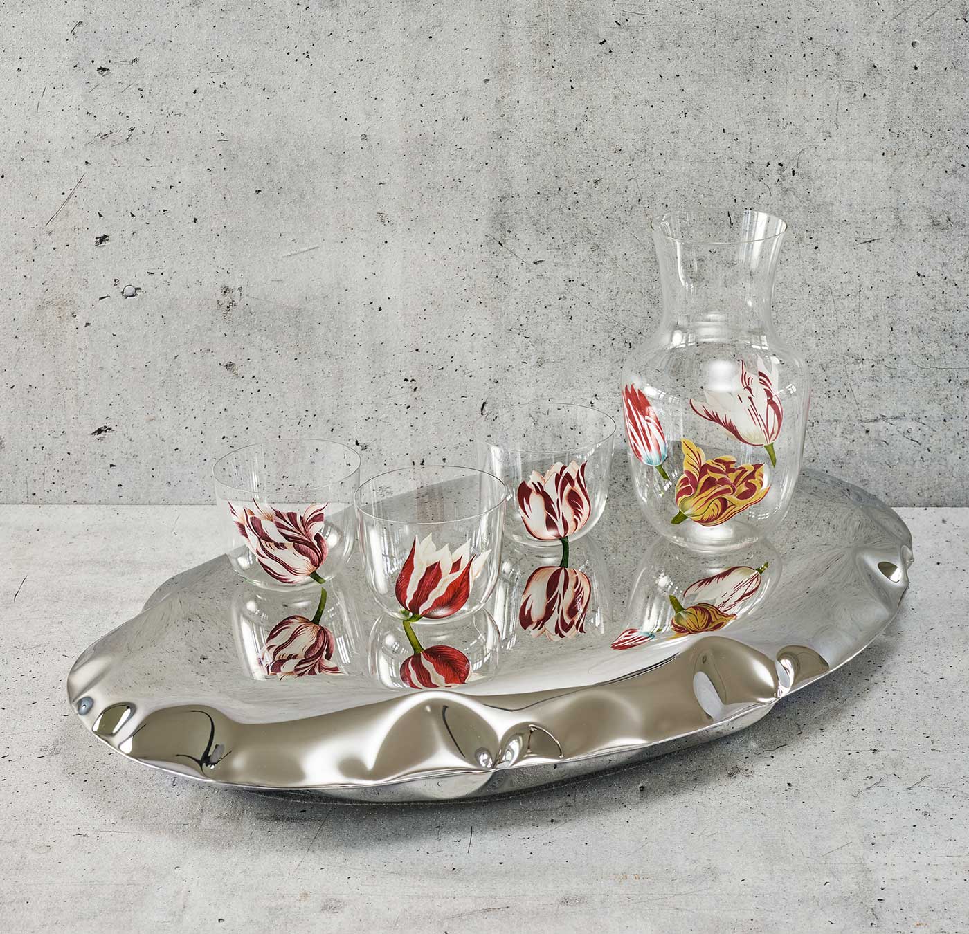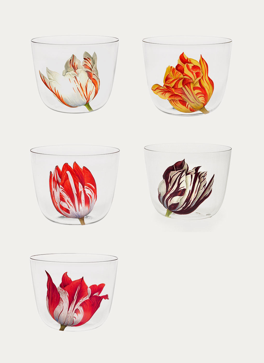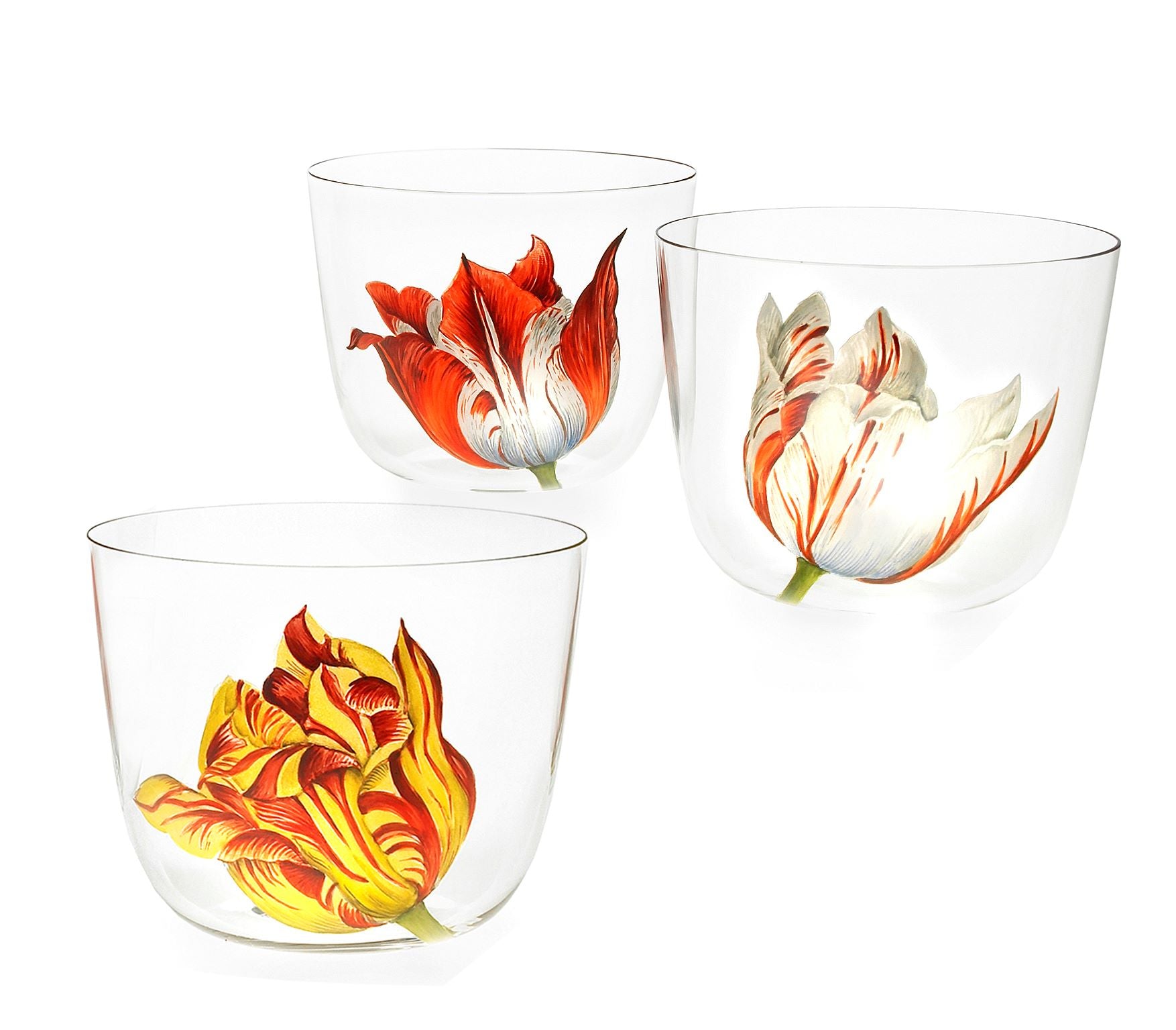 Around 1600, these beautiful flowers became an object of speculation, first in France and then in Holland. The blossoms of the 66 artistically drawn flowers are painted by hand at Lobmeyr with bright enamel colors on the classic Lobmeyr Alpha cup.