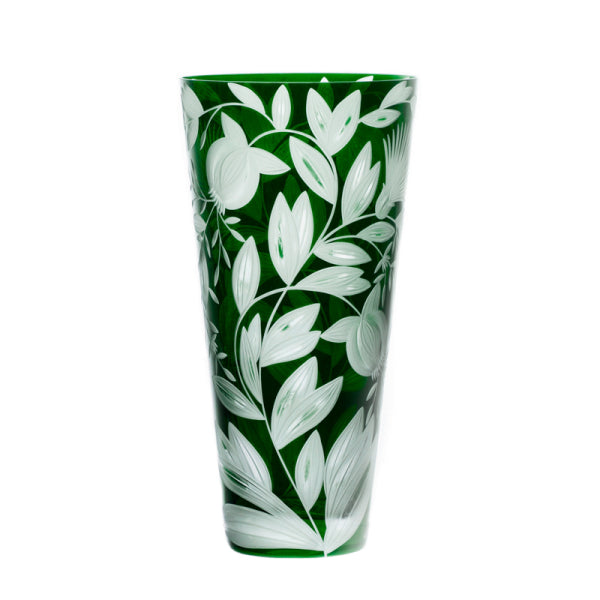 Inspired by iconic Wiener Werkstätte designs, the Verdure Vase brings timeless elegance to your decor. Mouth-blown and hand-engraved in the Czech Republic, it features delicate blossoms and vines—a design only achievable by a few skilled artisans.