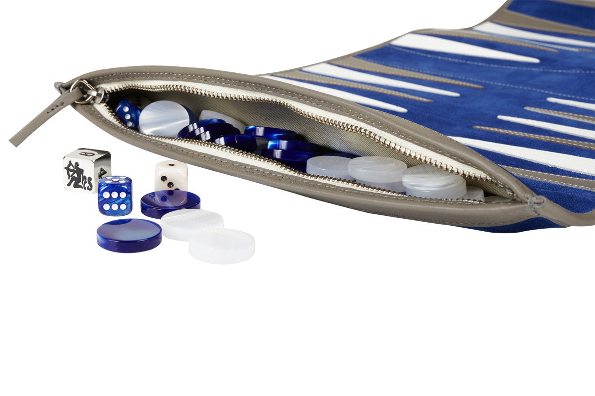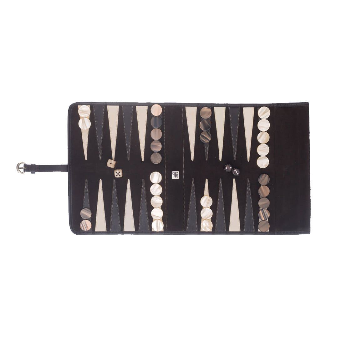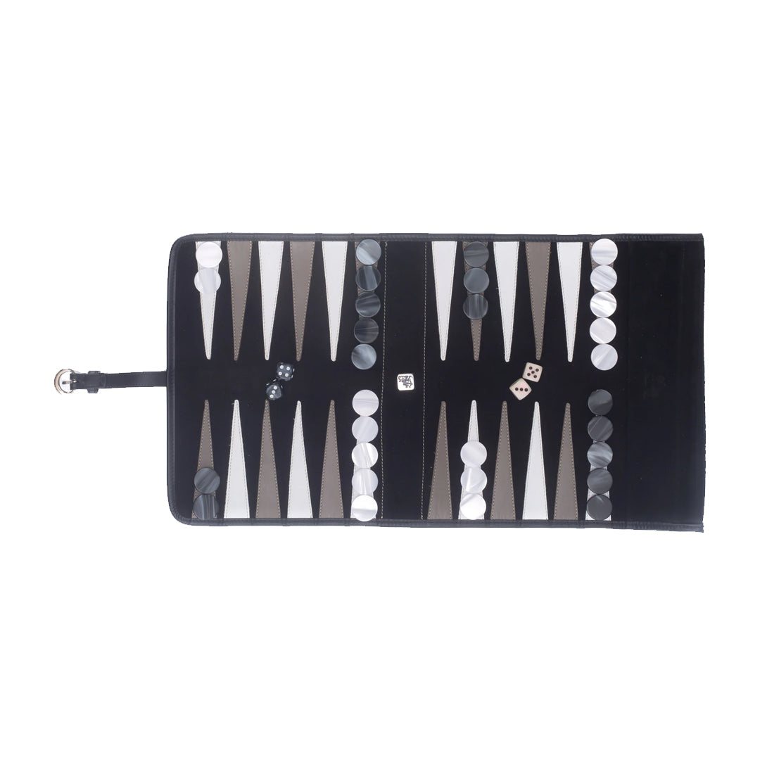 Victor's Travel Backgammon Set allows you to play and travel effortlessly. Its compact, lightweight design makes it convenient to carry in a suitcase or bag. Whether on a plane, at the beach, by the pool, or in a restaurant, you can enjoy the game anywhere. The integrated zippered pocket stores the chips and dice, and when you're done, roll it up with the independent strap.
