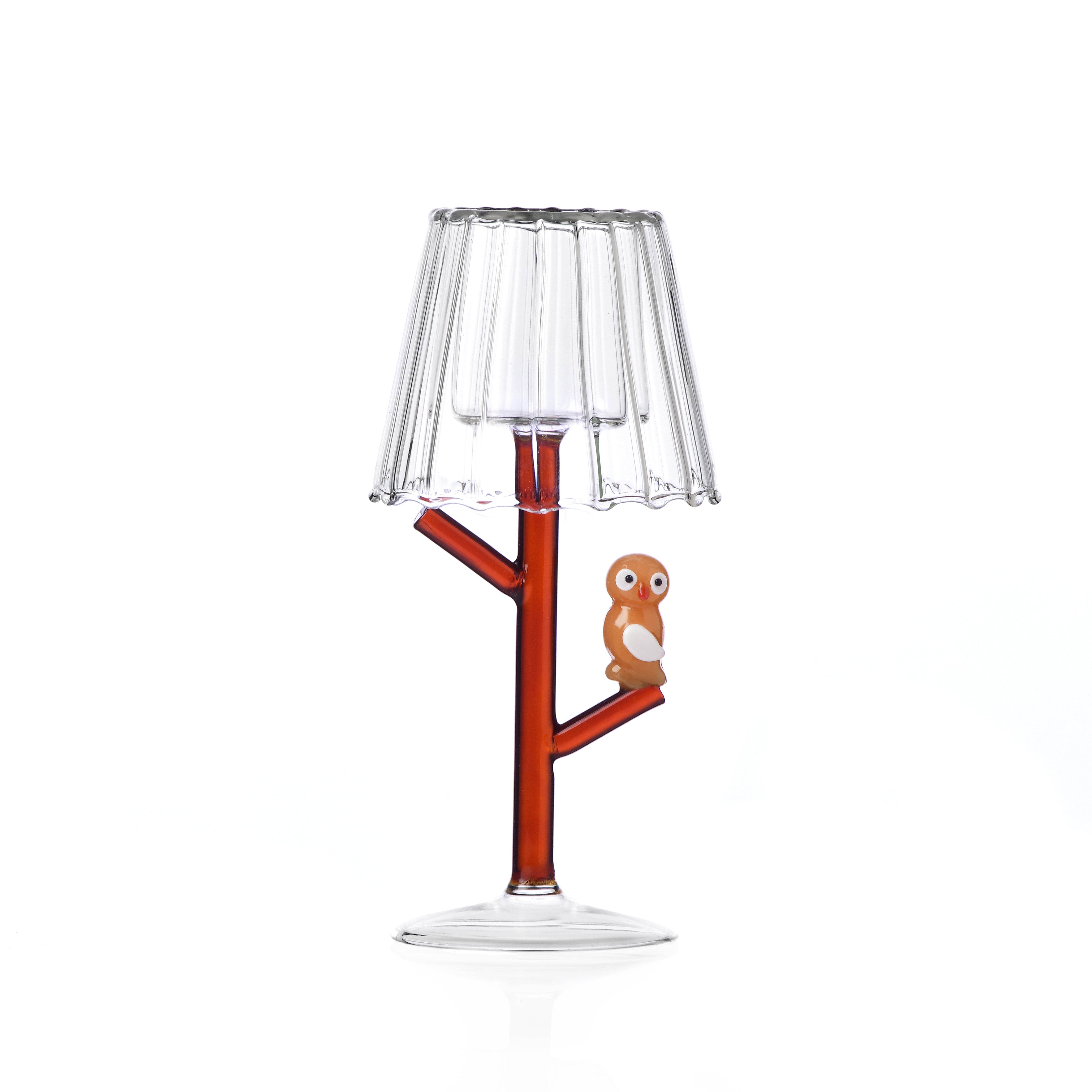 Experience the exquisite craftsmanship of the Woodland Tales Owl Tealight, designed by Alessandra Baldereschi. Each piece is handcrafted with flameworked glass, standing at a height of 7.1 inches. The perfect piece to add a whimsical touch to any space.